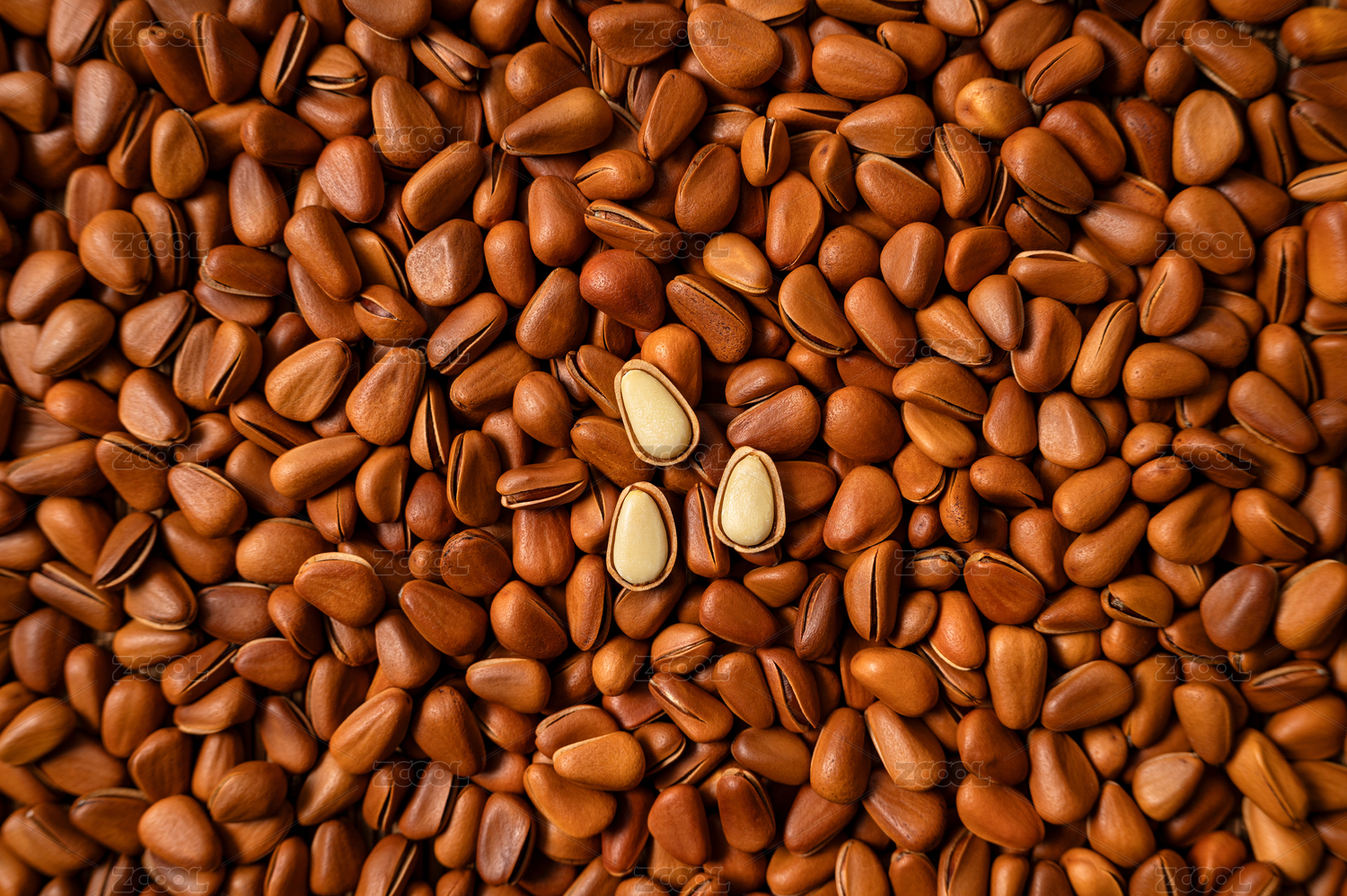 满屏幕的南瓜子和木勺盛放的南瓜子仁