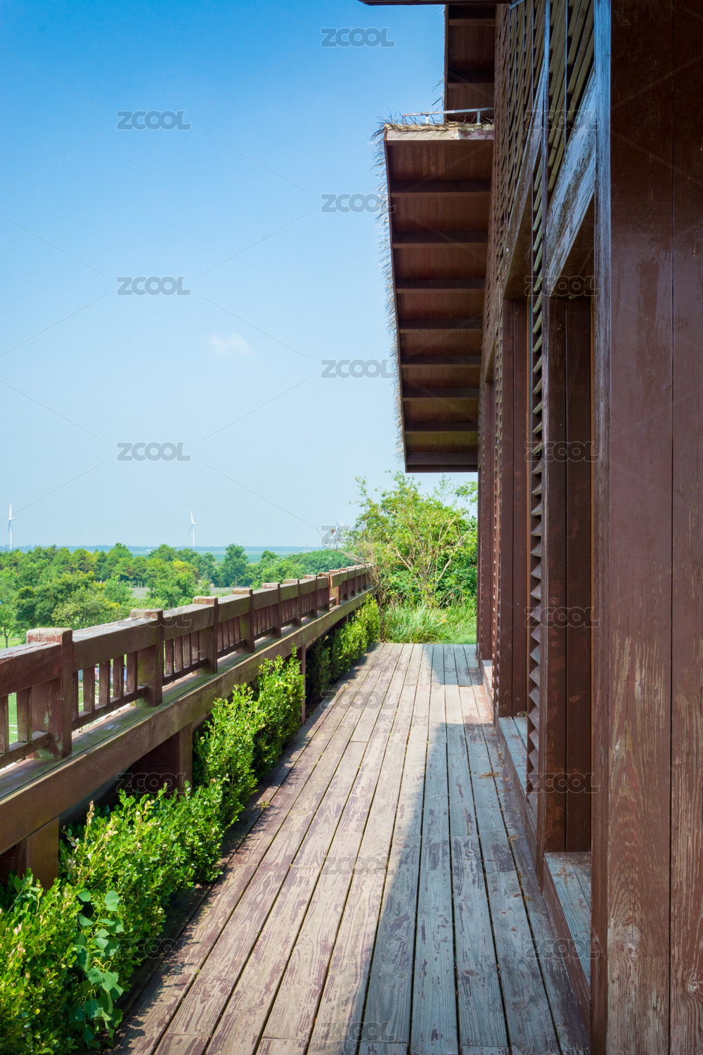 树林中的木屋过道