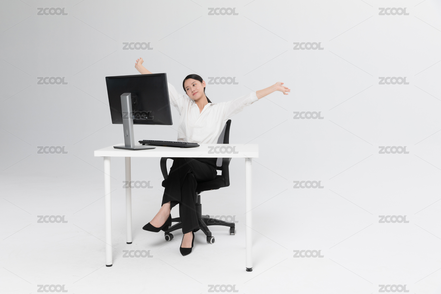 职场女性坐在椅子上伸懒腰