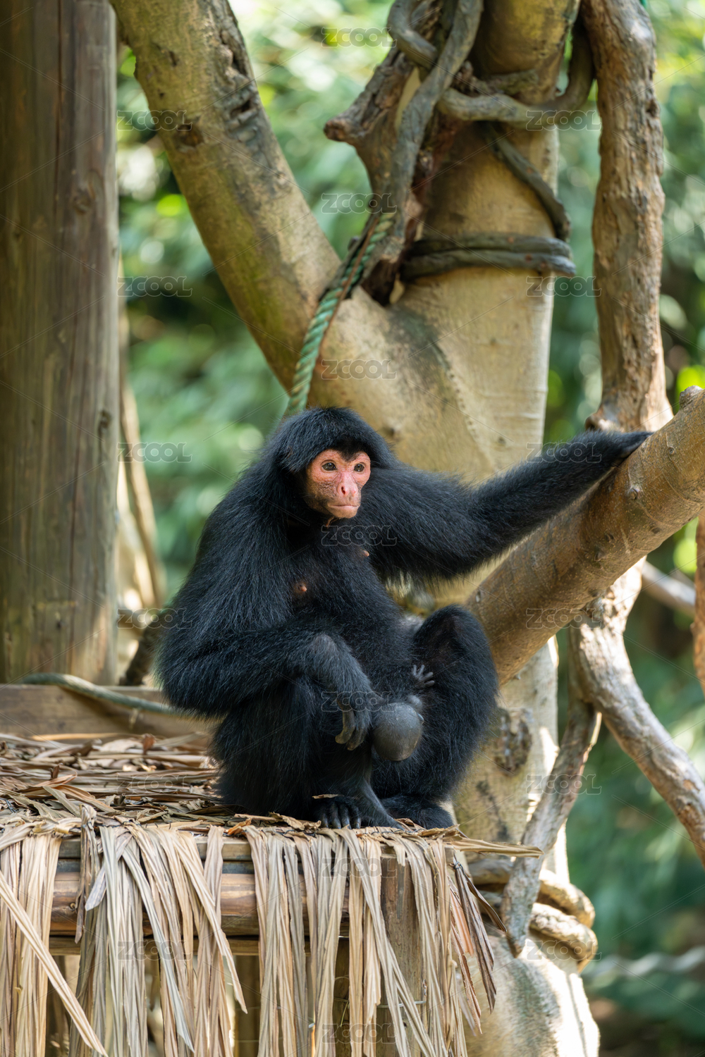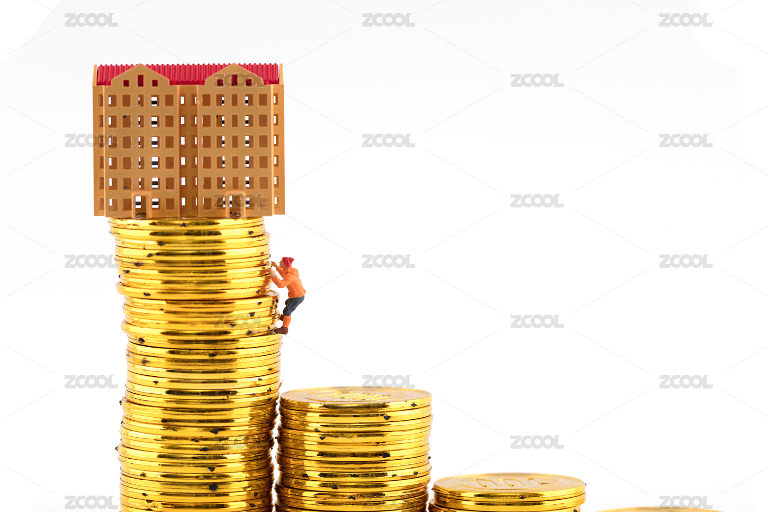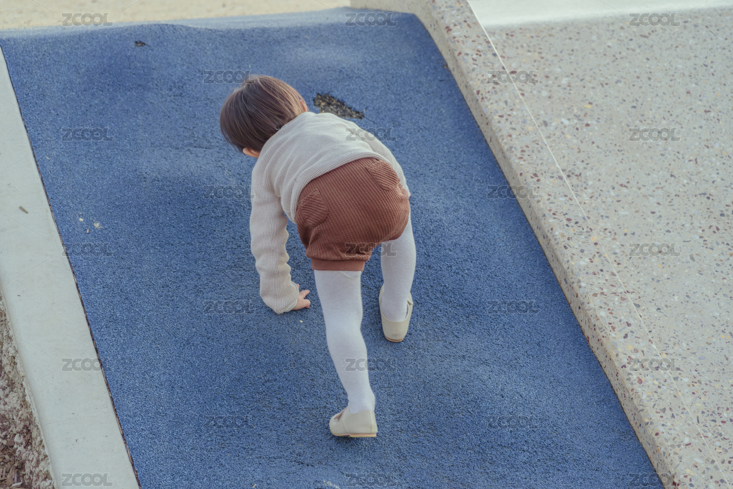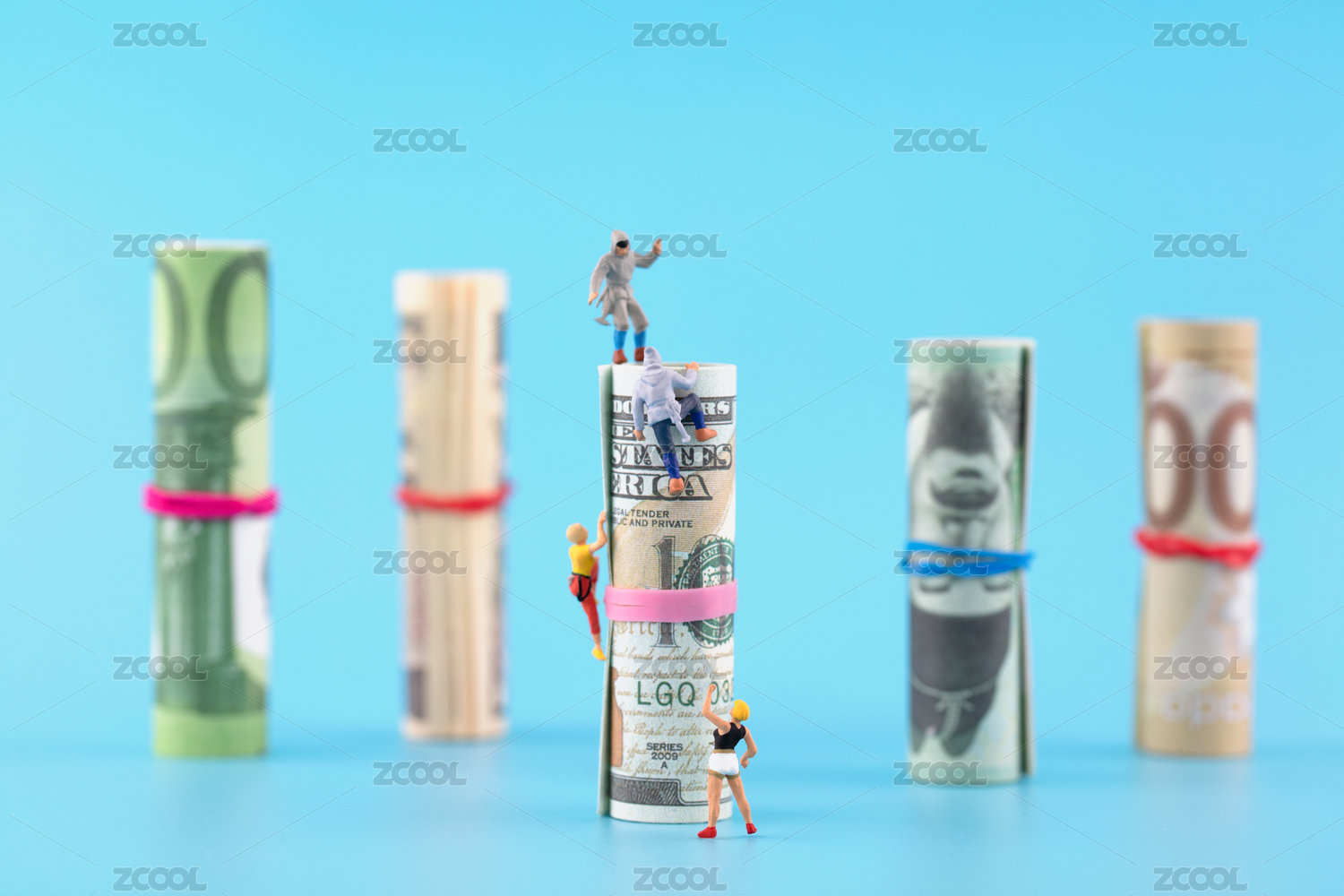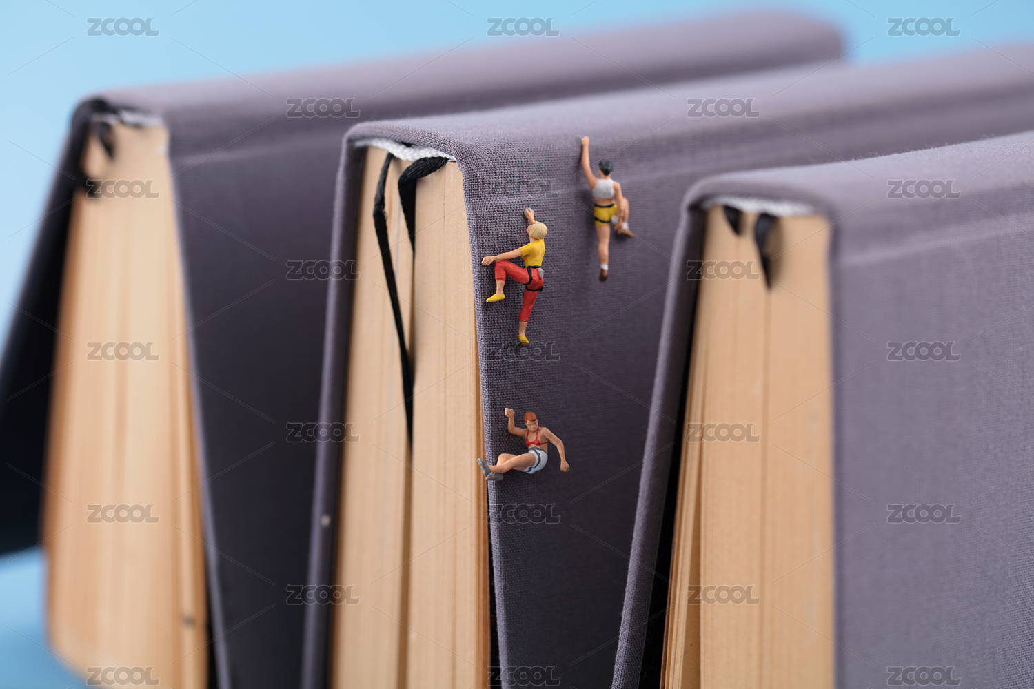 一只小雕像登山者在迷人的微距镜头中攀爬植
