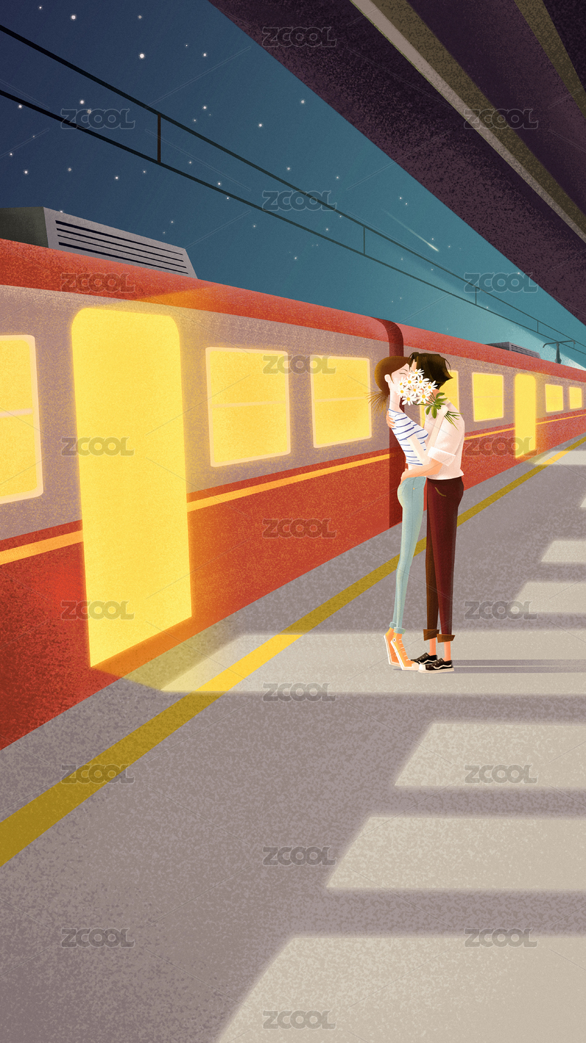 七夕情人节那天,男女朋友在车站热情拥吻