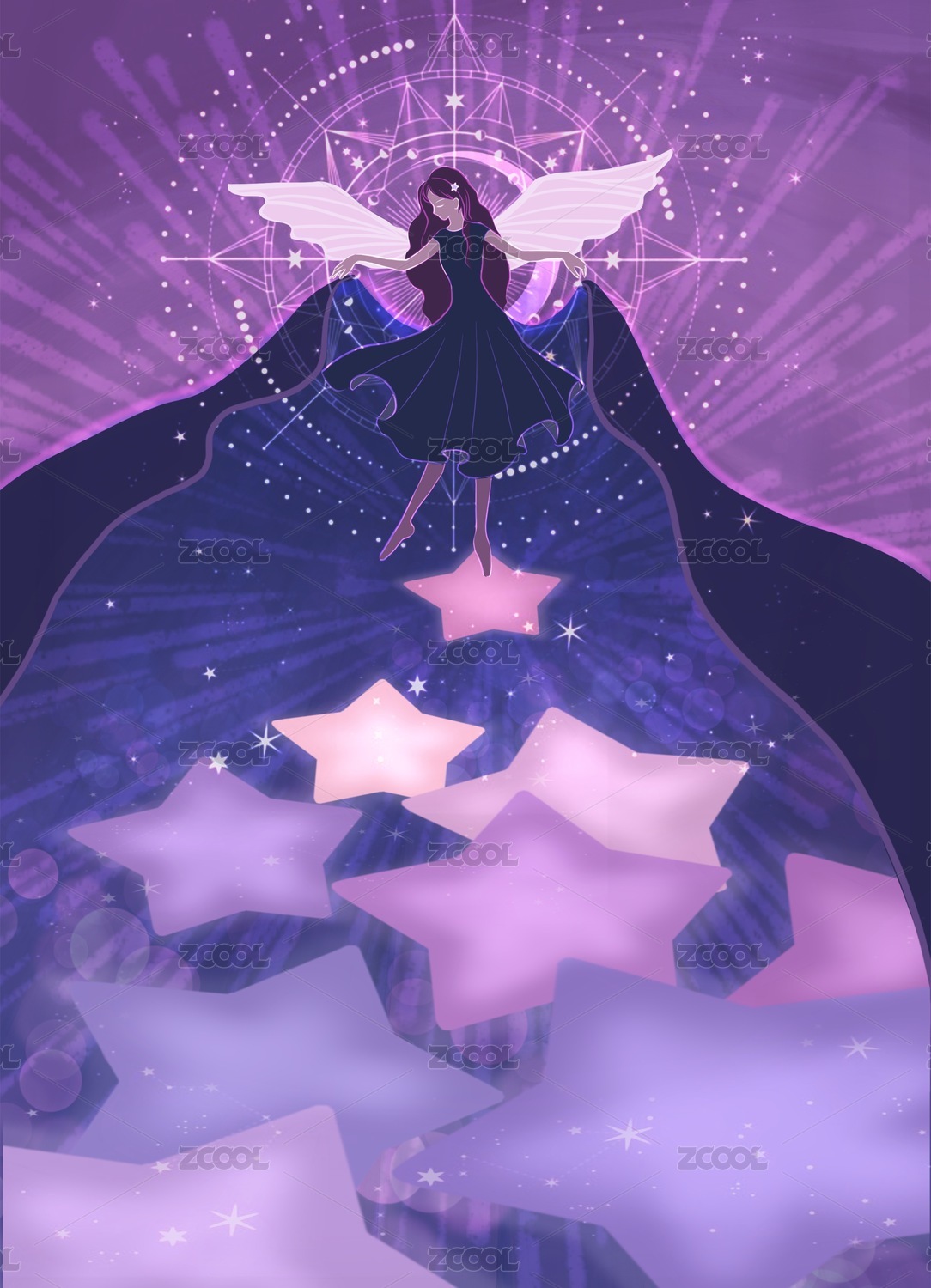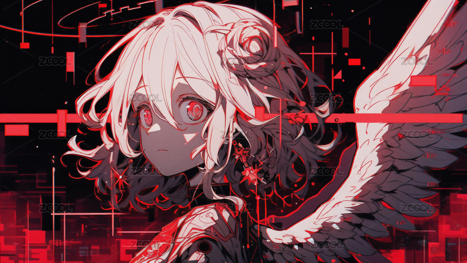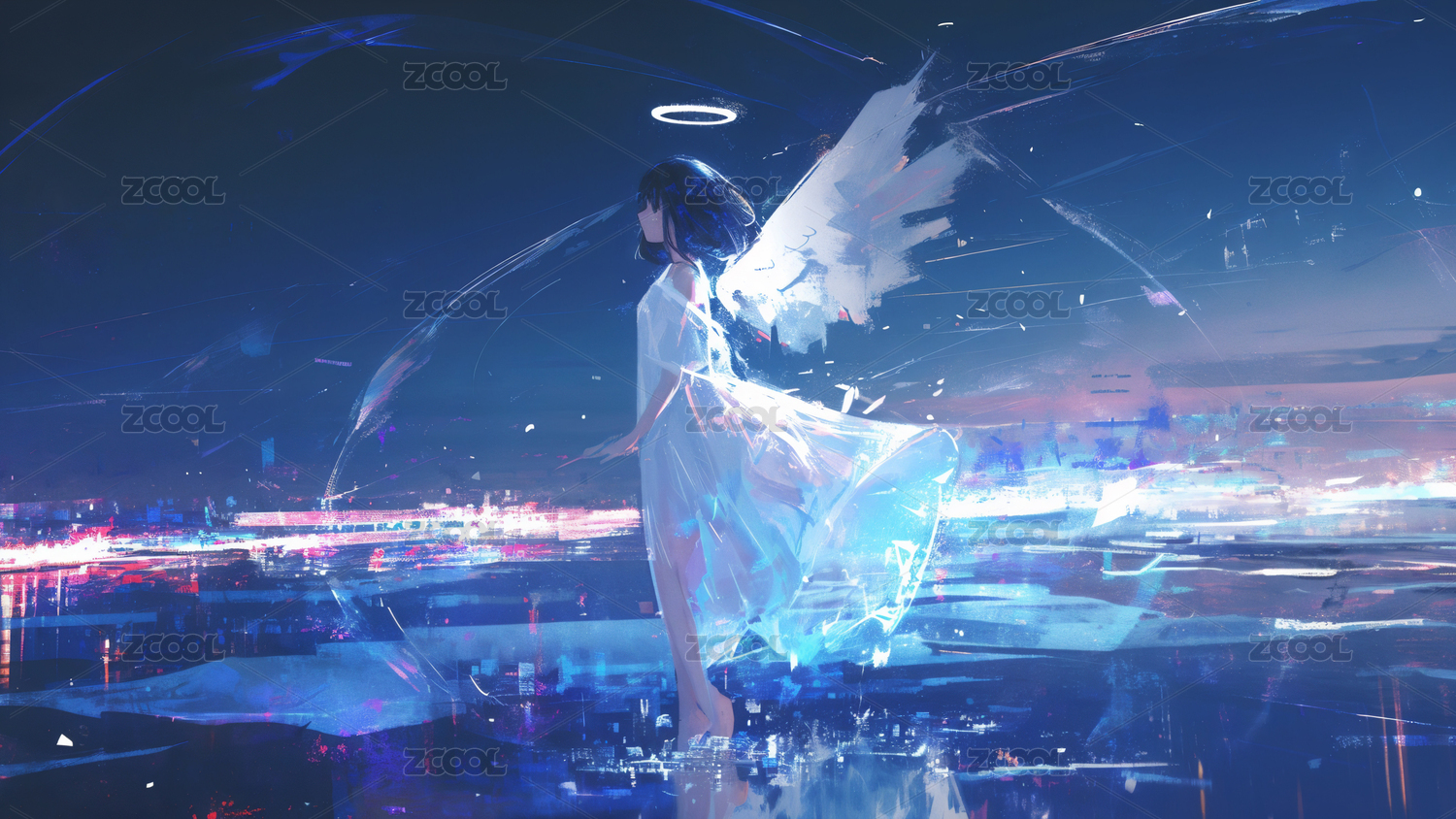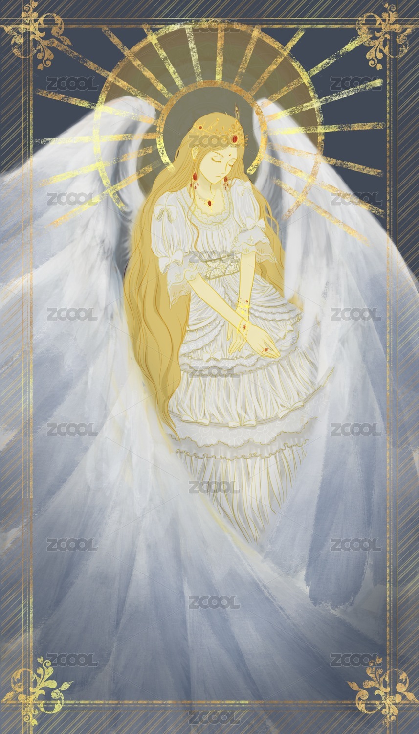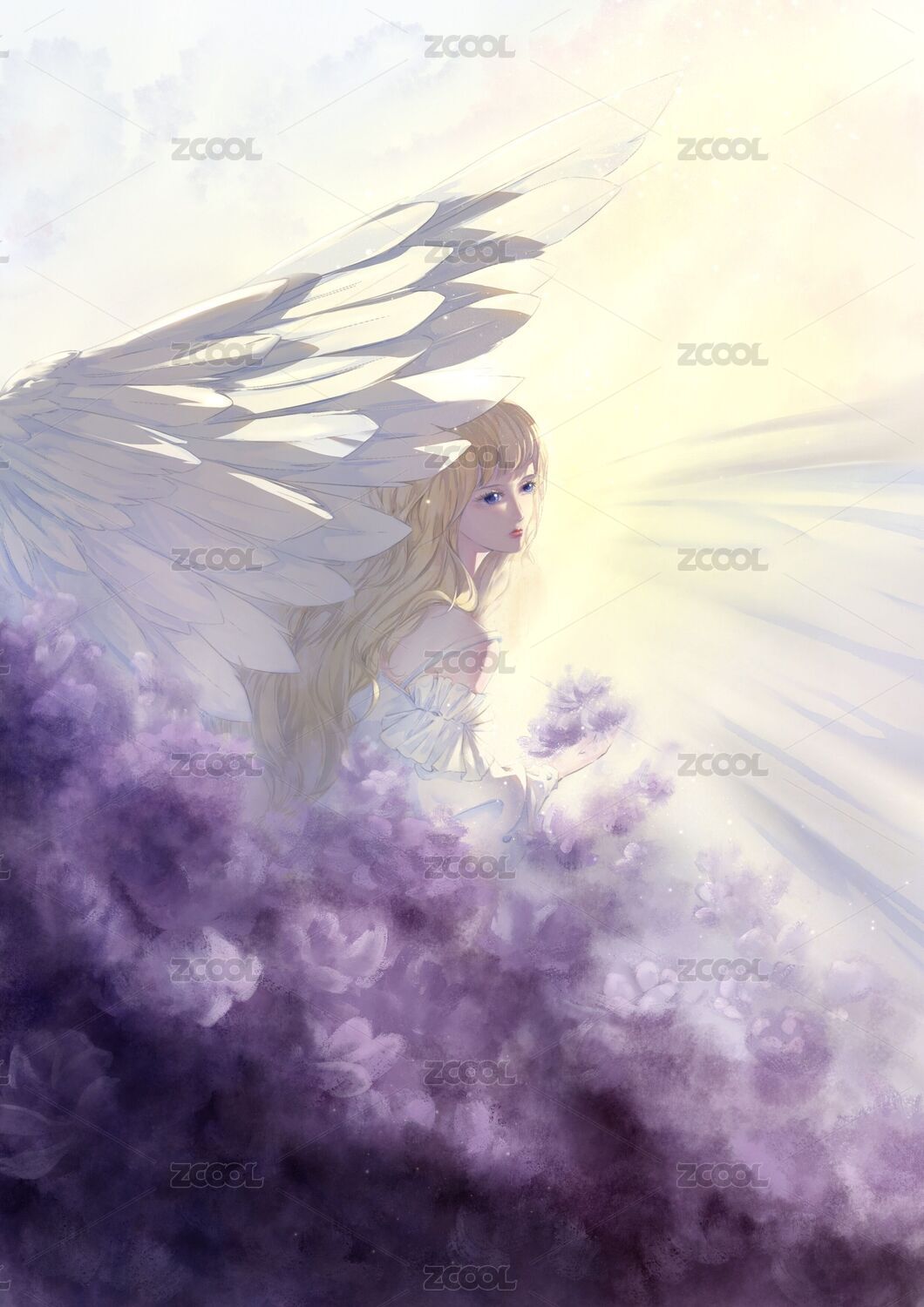 穿着蕾丝裙的天使在花丛中背靠太阳望向远方
