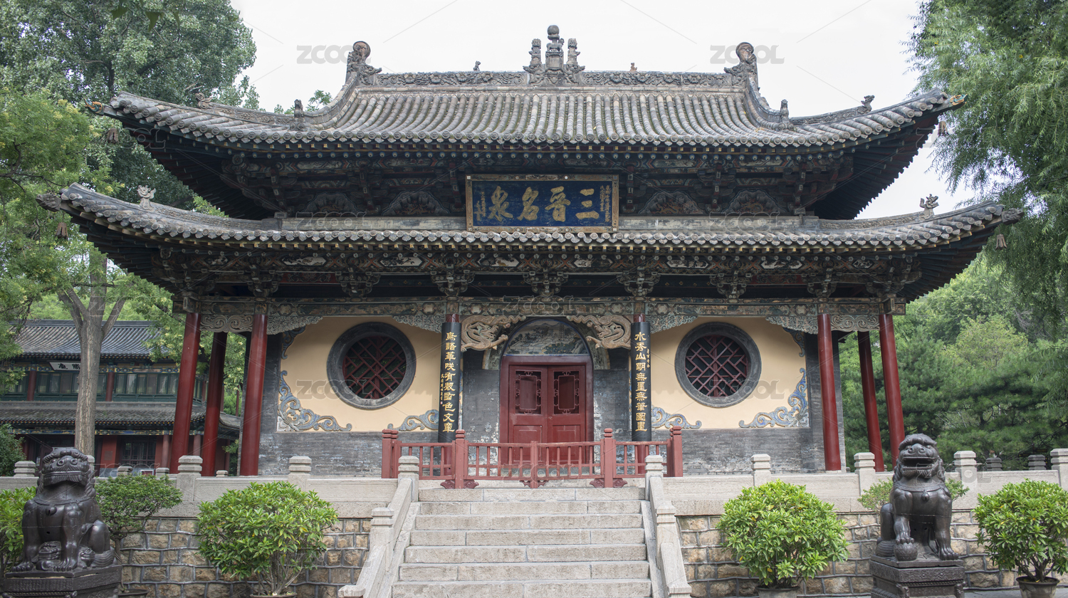山西晋祠公园内中国古建筑
