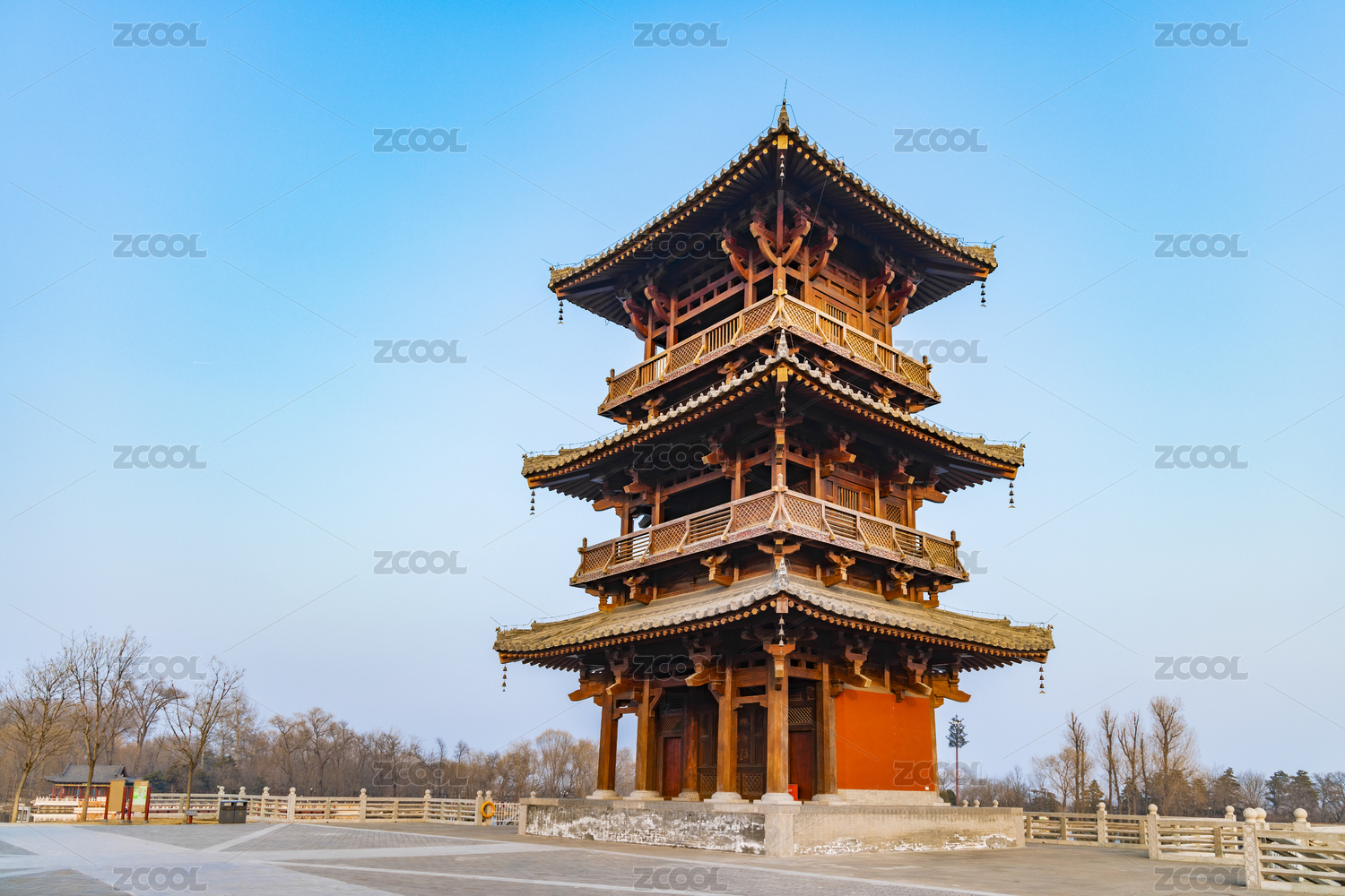 中国山西省太原市晋祠公园风雨亭建筑景观