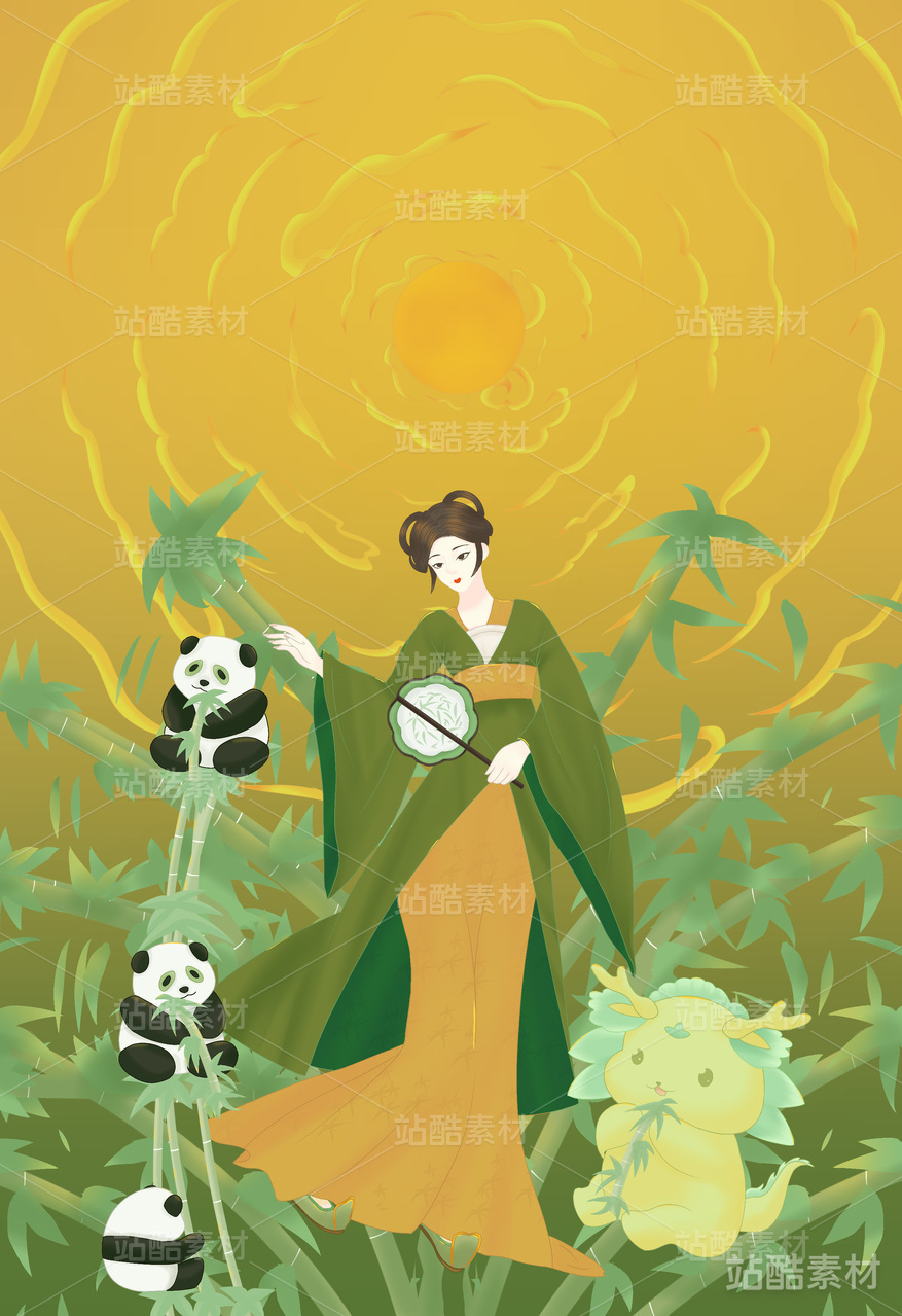 卡通扁平风图案小元素熊猫