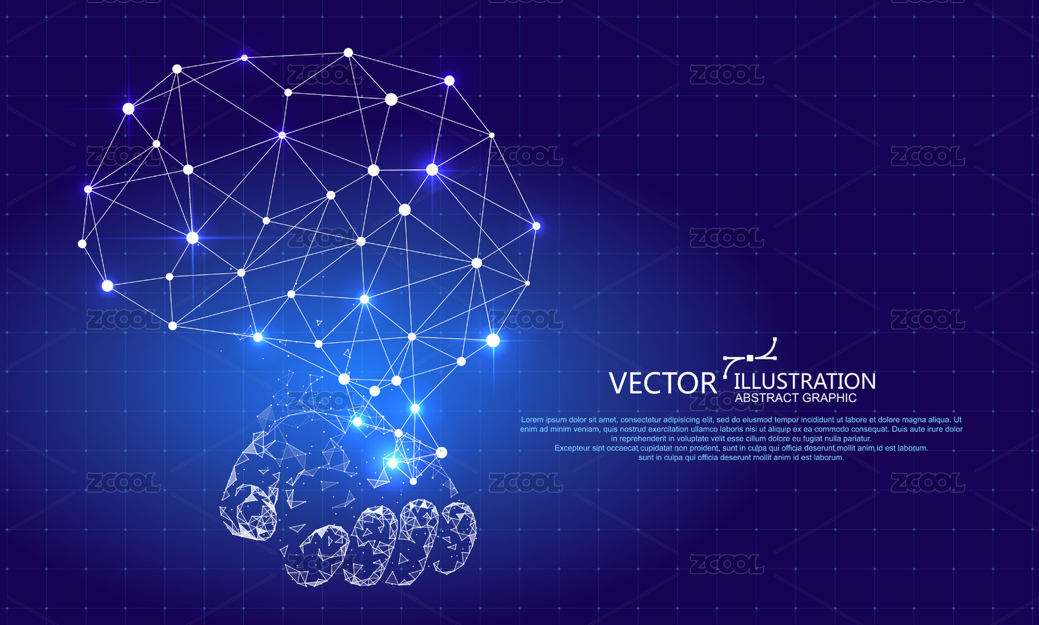 霓虹线条人工智能大脑全息图