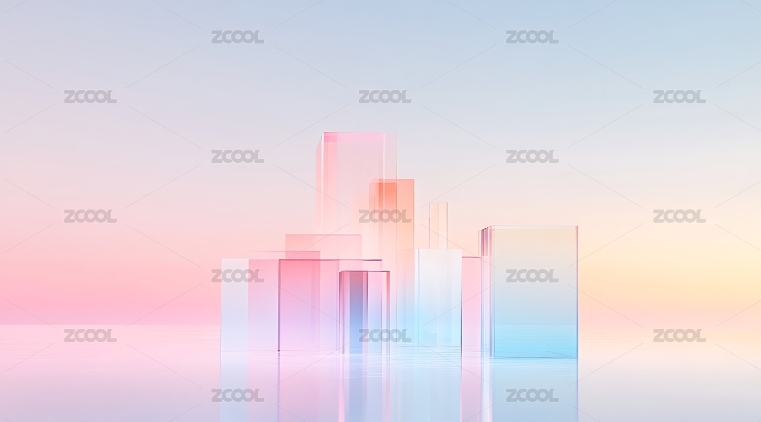 抽象透明玻璃几何体背景3D渲染