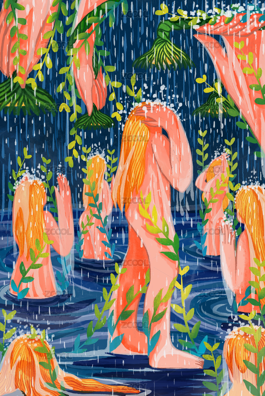 女人沐浴洗澡温泉泡澡洗漱冲刷冲洗