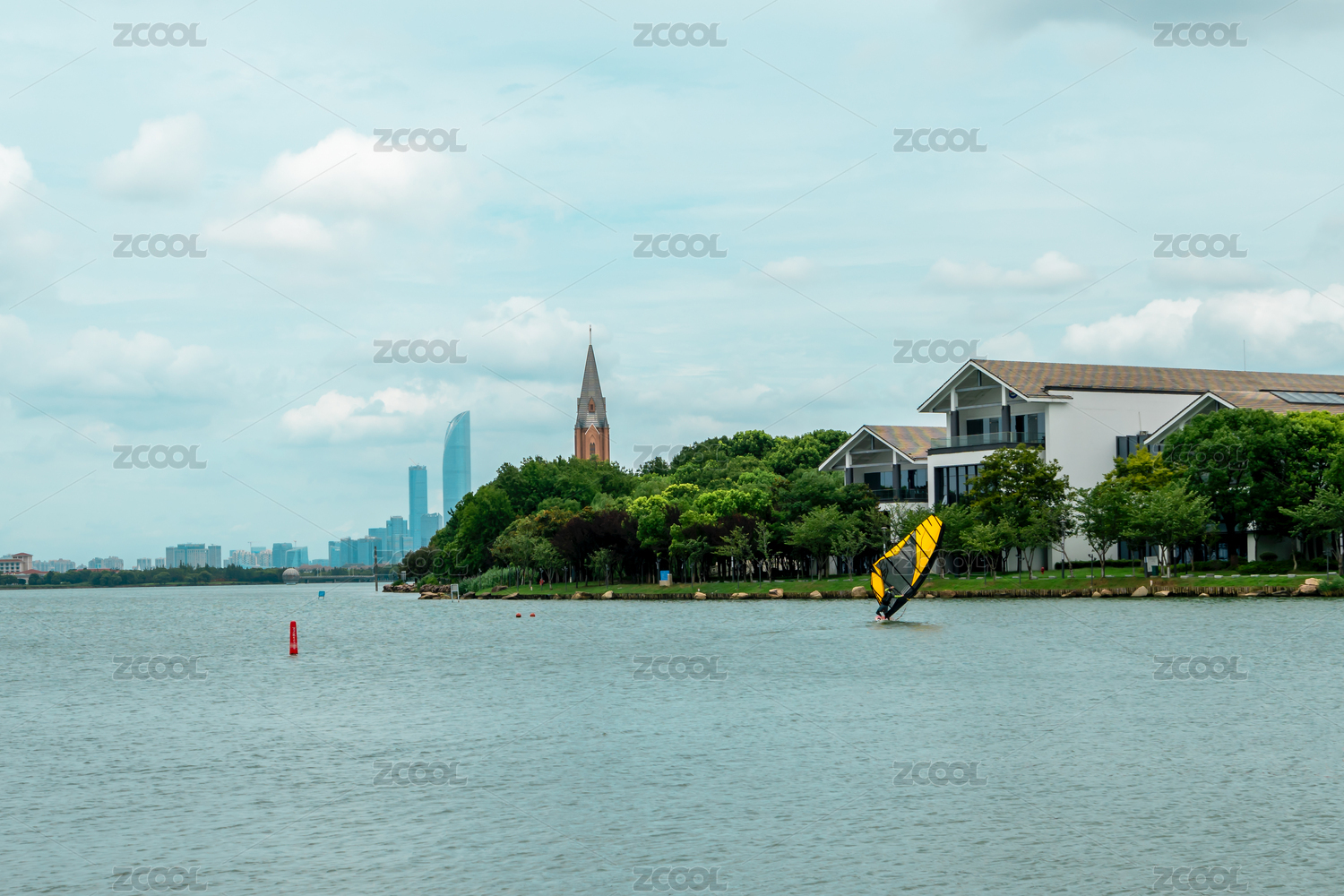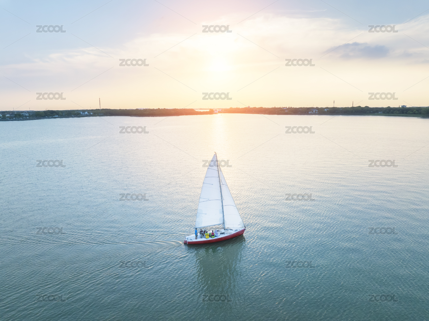 水上海上帆船运动蓝色大海蓝天白云日落晚霞