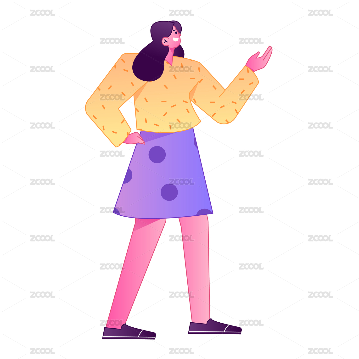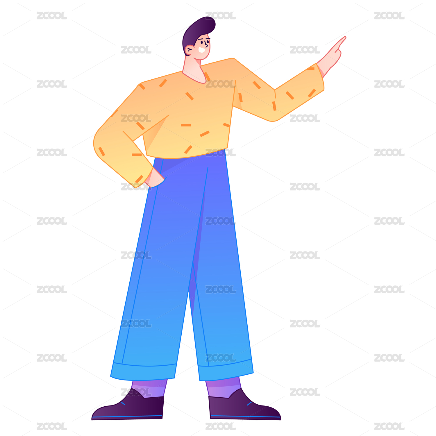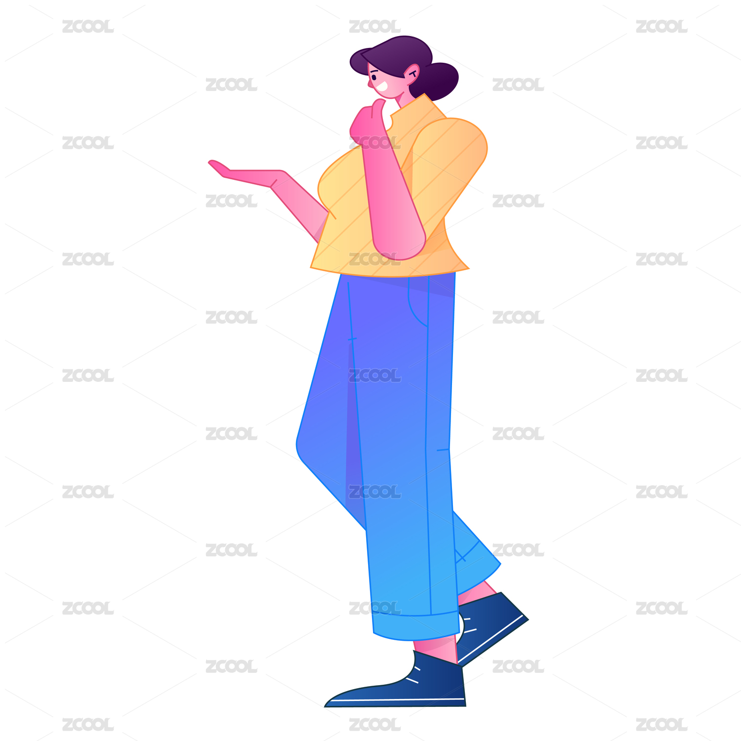 人物站姿肢体动作自信展示矢量扁平渐变插画