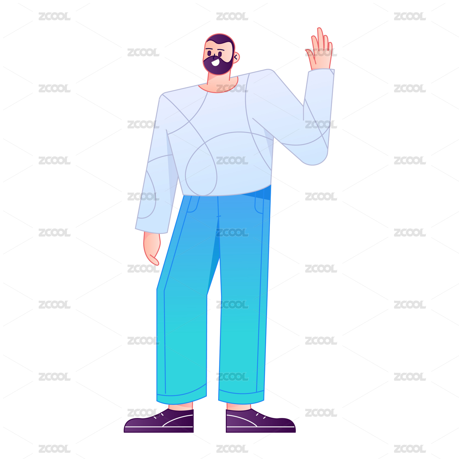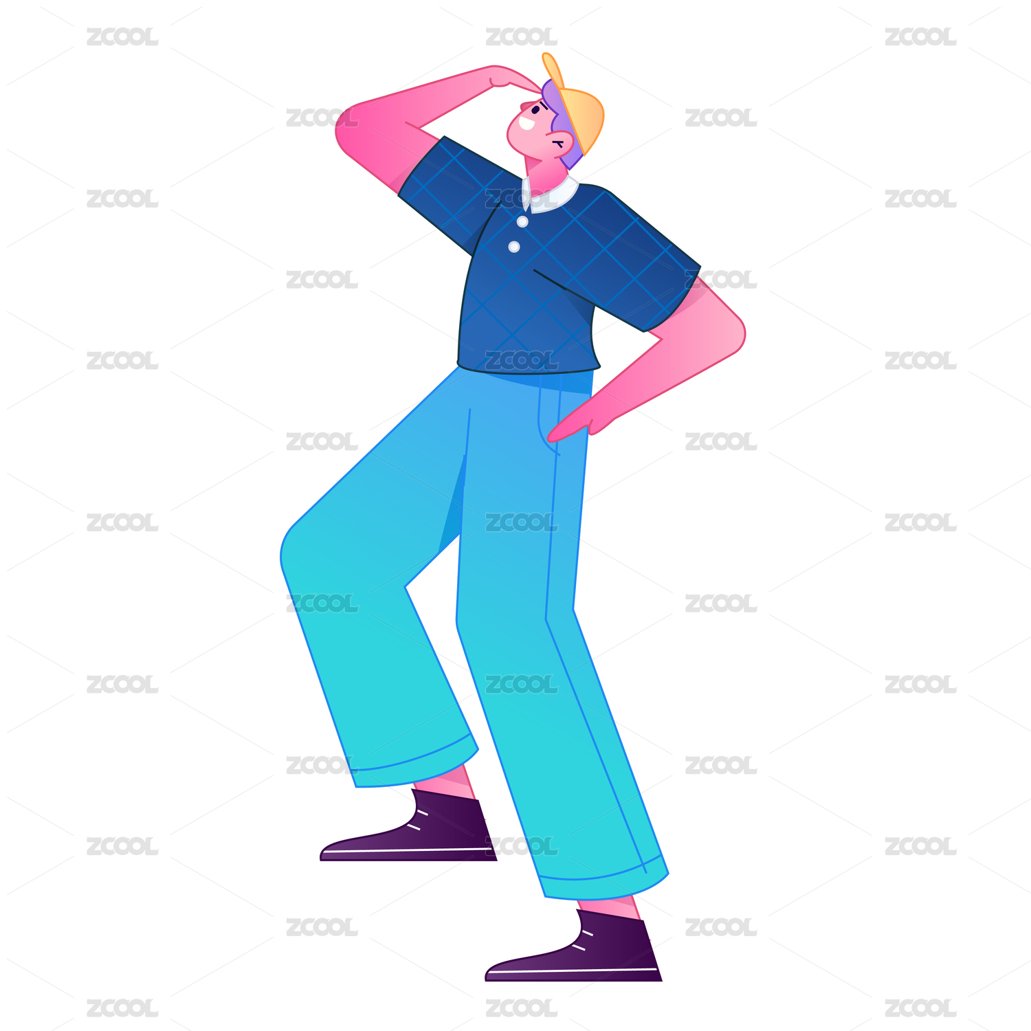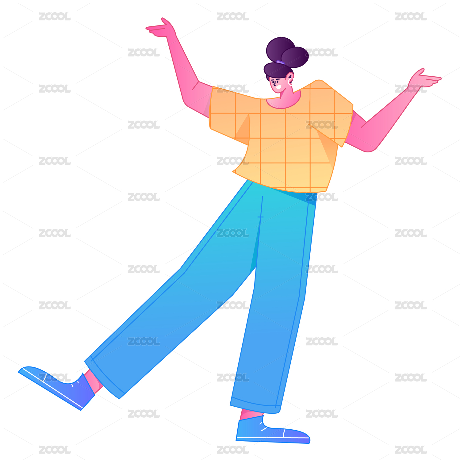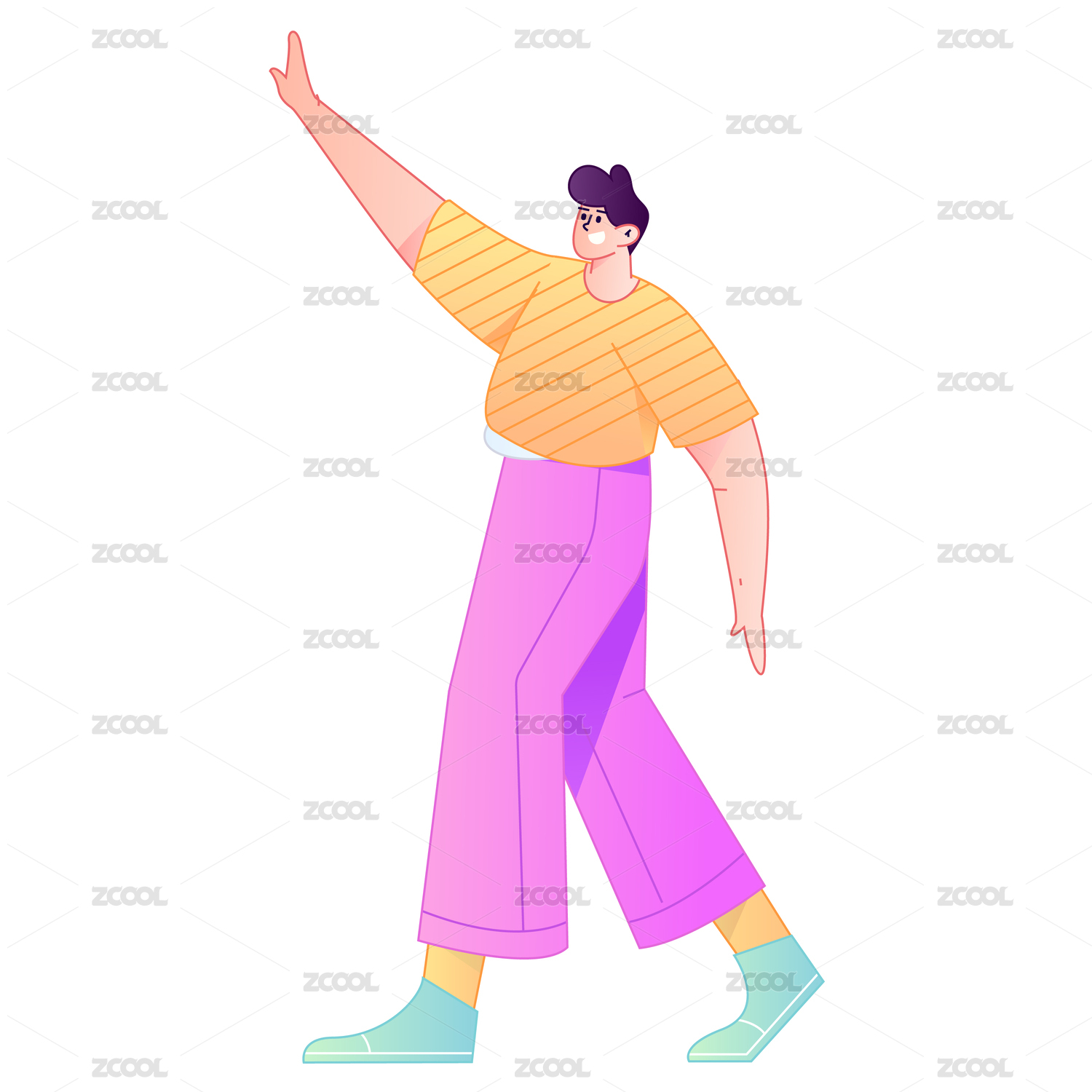 人物站姿肢体动作自信展示矢量扁平渐变插画