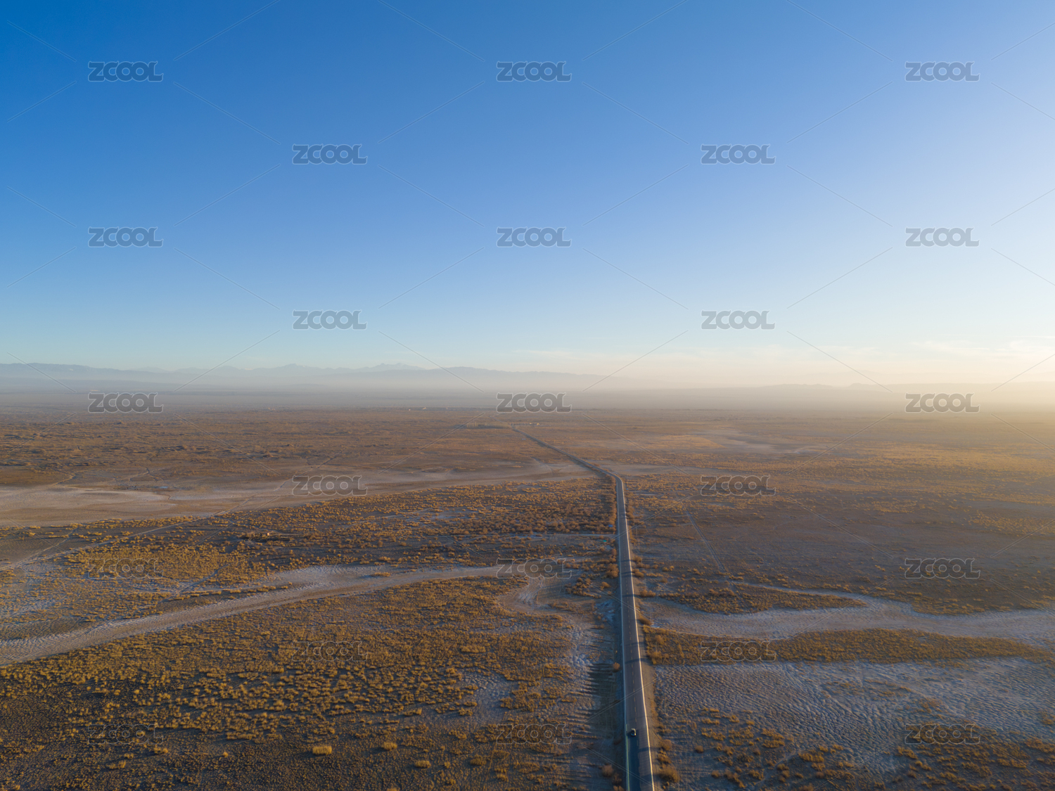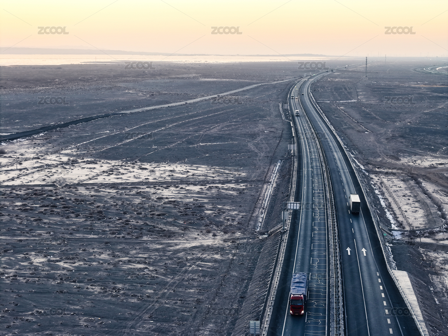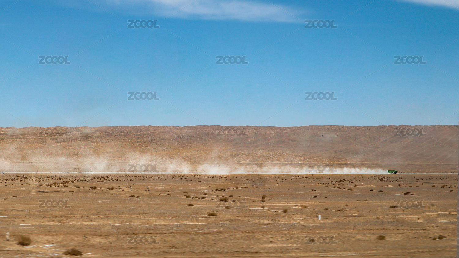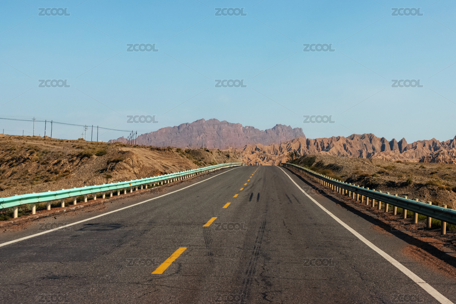 远处高山,荒无人烟荒漠边上的高速公路,中国