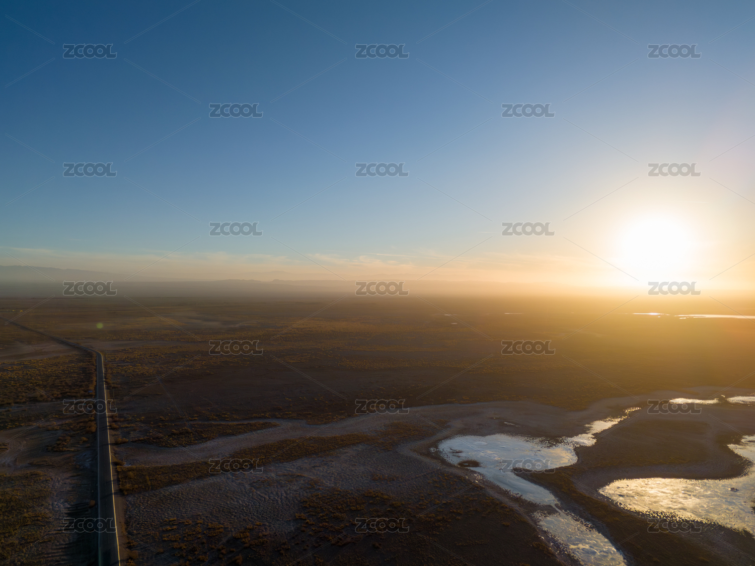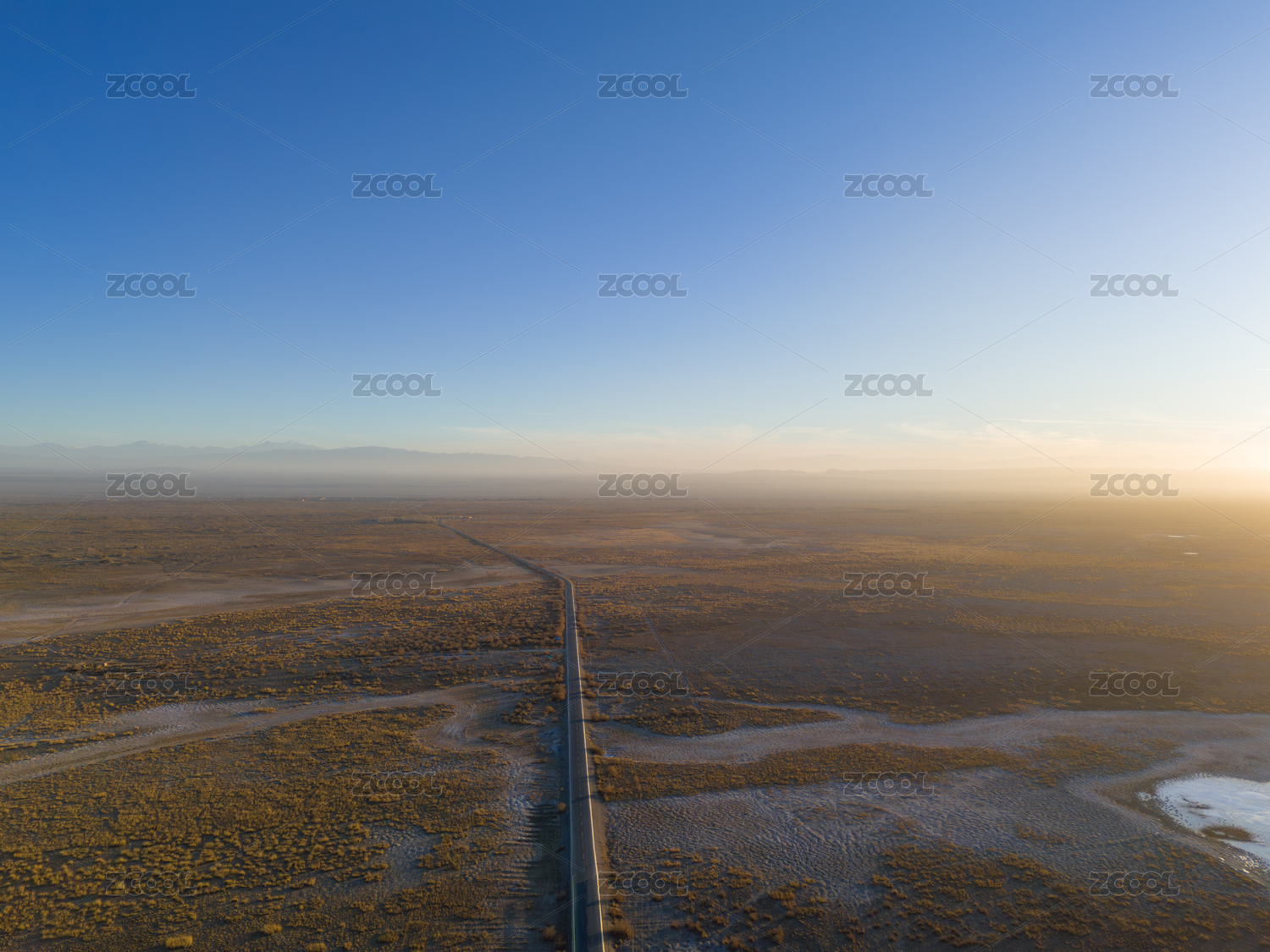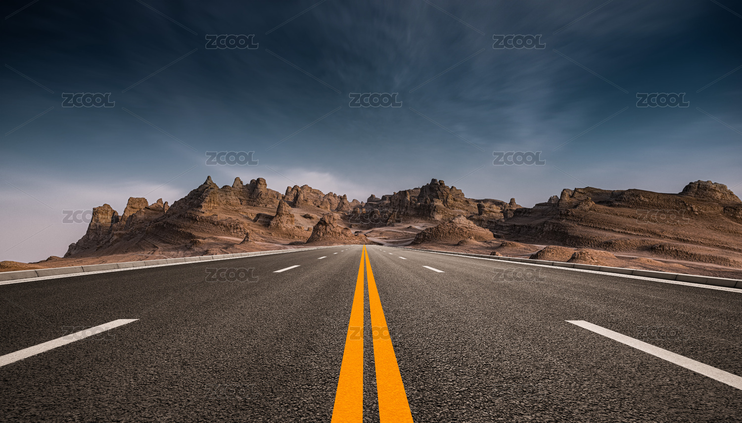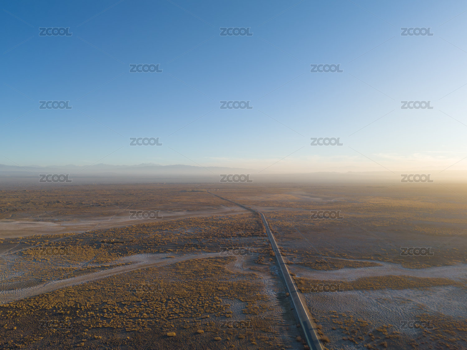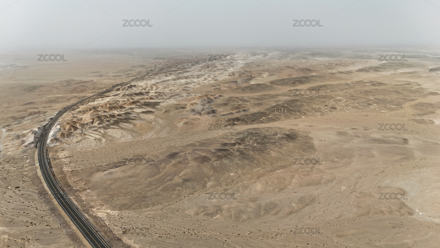远处高山,荒无人烟荒漠边上的高速公路,中国