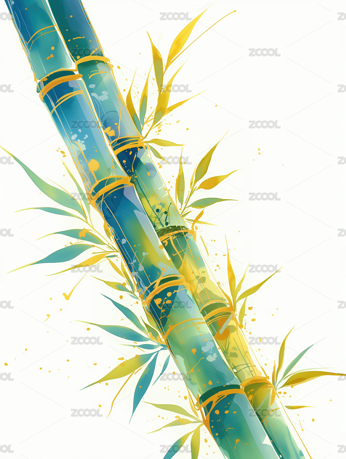 国风水彩竹子插画
