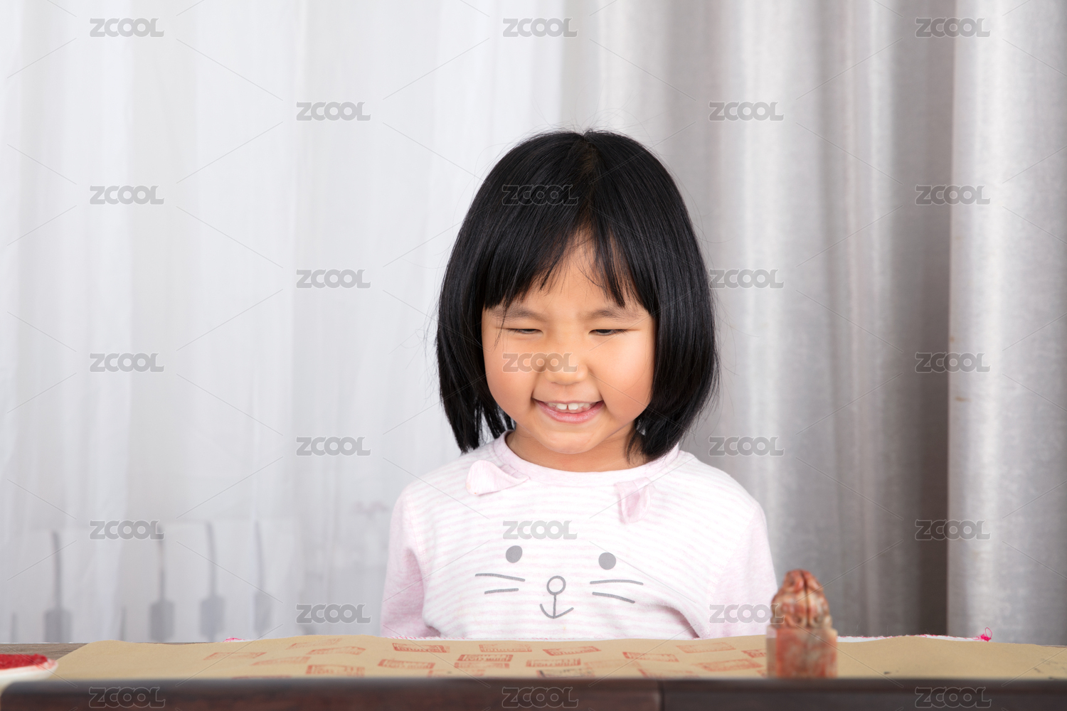 愤怒表情的小姑娘看着宣纸上自己加盖的印章