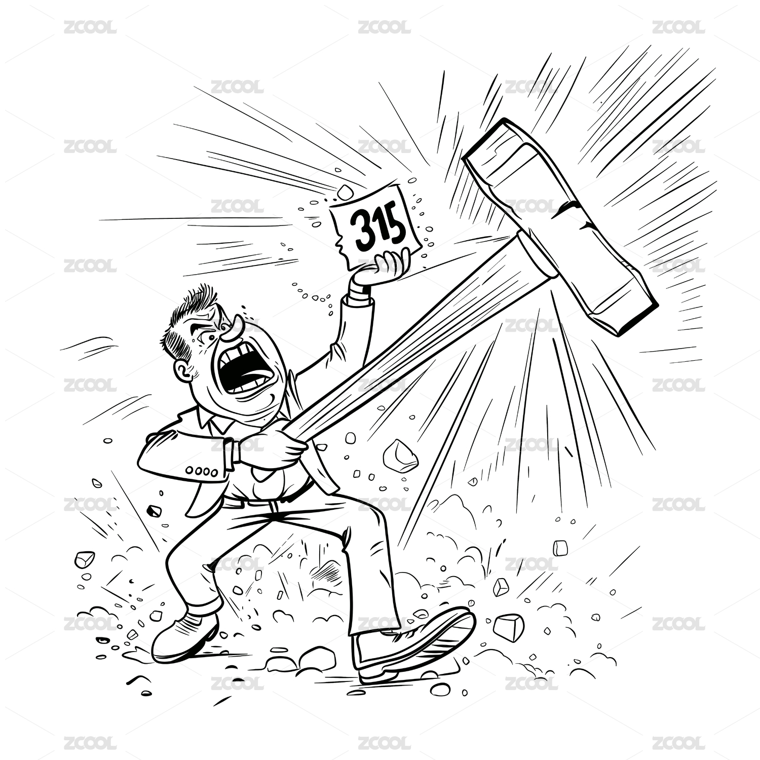 愤怒的上班族白领女性手拿锤子发泄情绪
