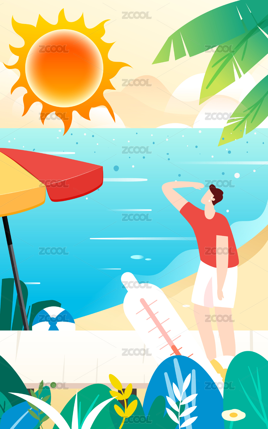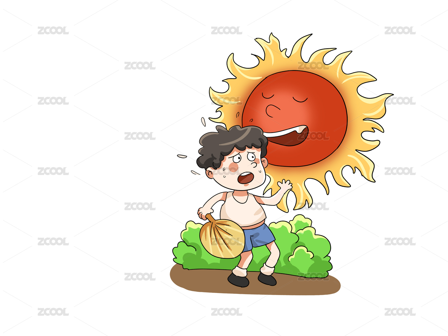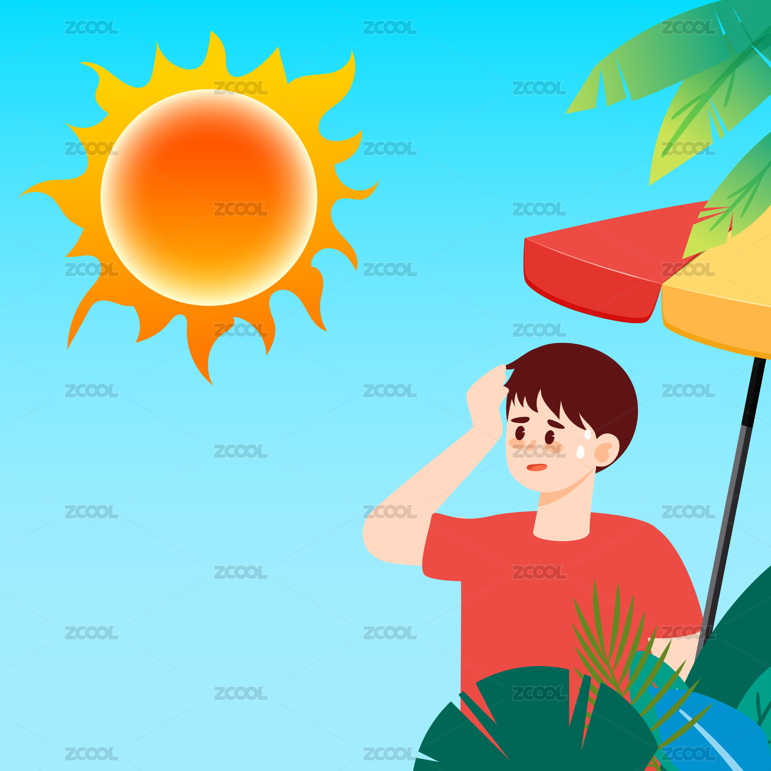 高温预警烈日环境预防中暑三伏天酷暑插画