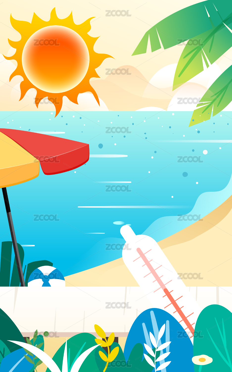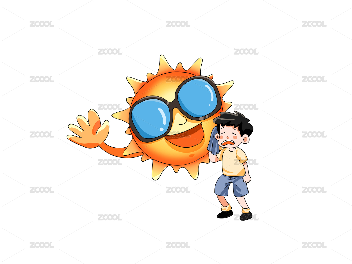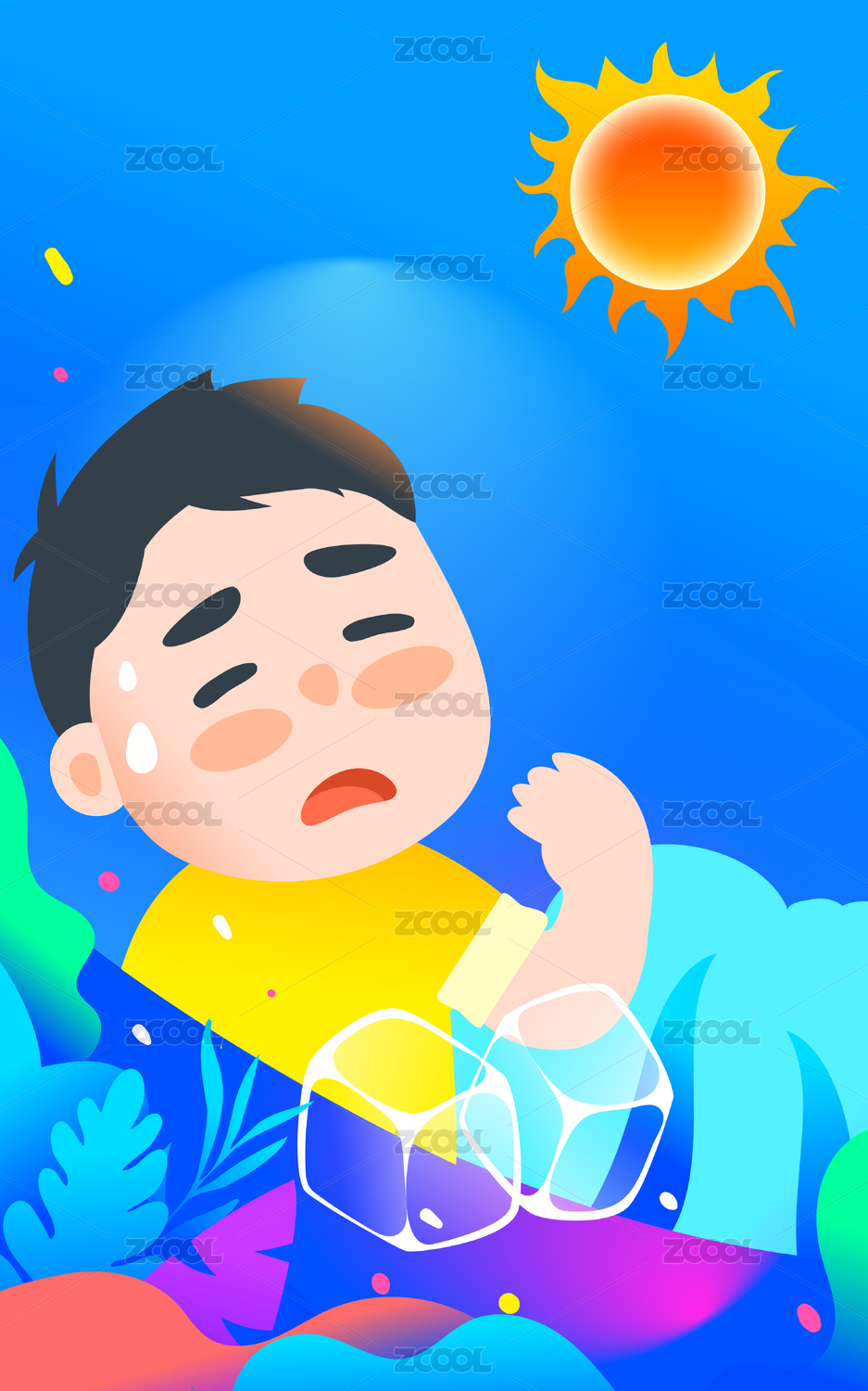高温预警烈日环境预防中暑三伏天酷暑插画