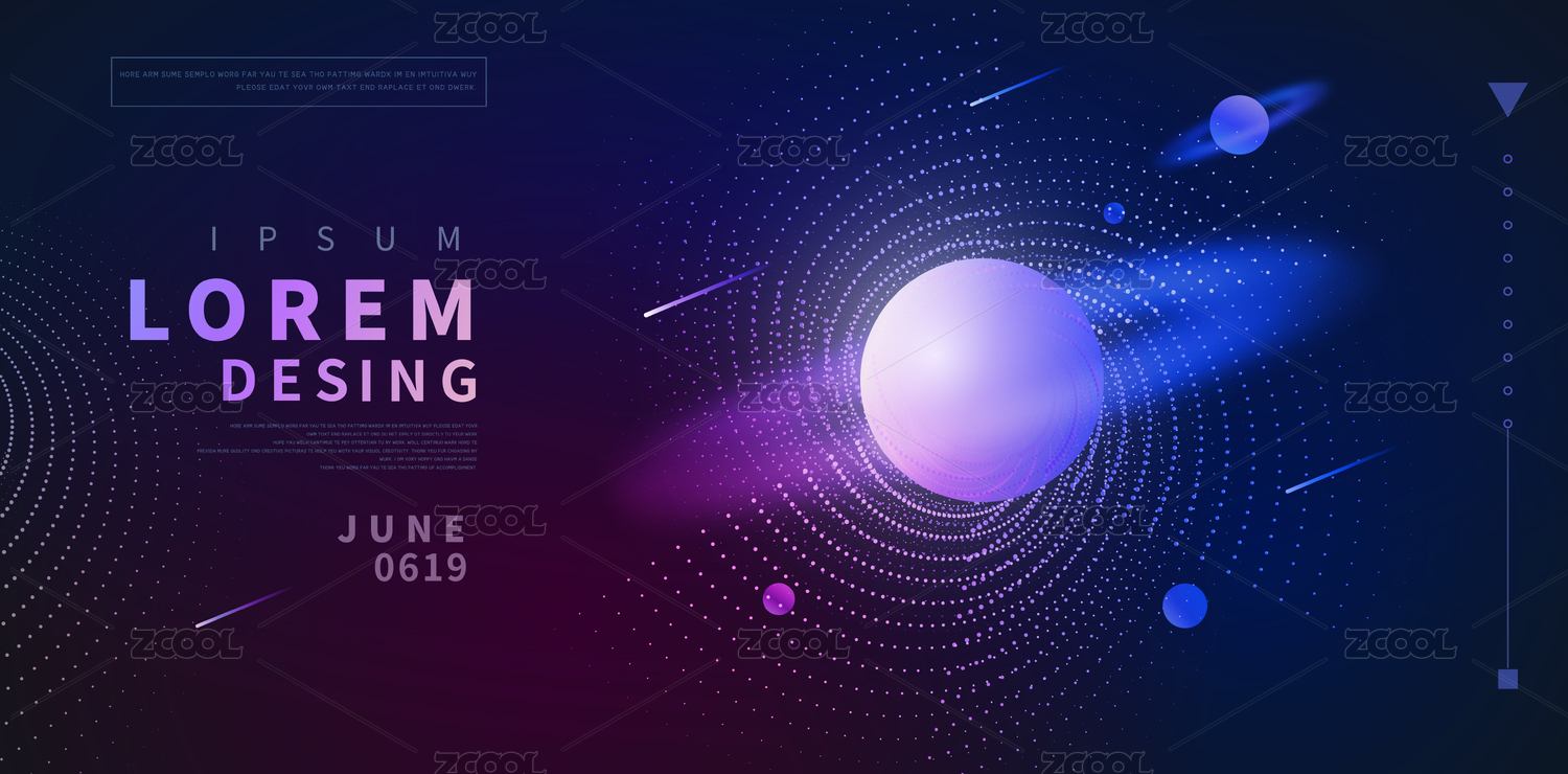 抽象矢量星系中流星陨落划出发光轨迹背景