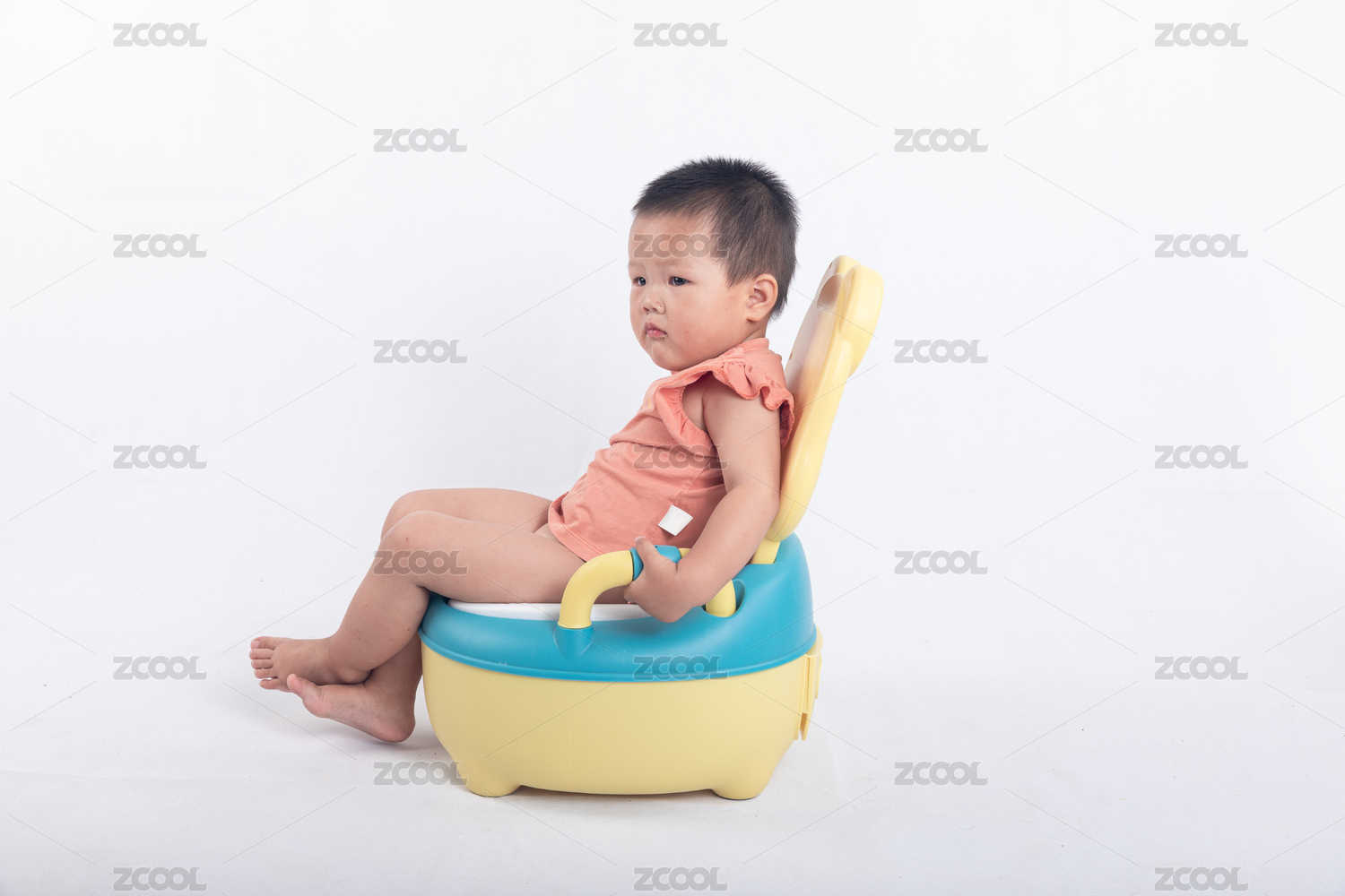 小女孩坐在坐便器上尿尿