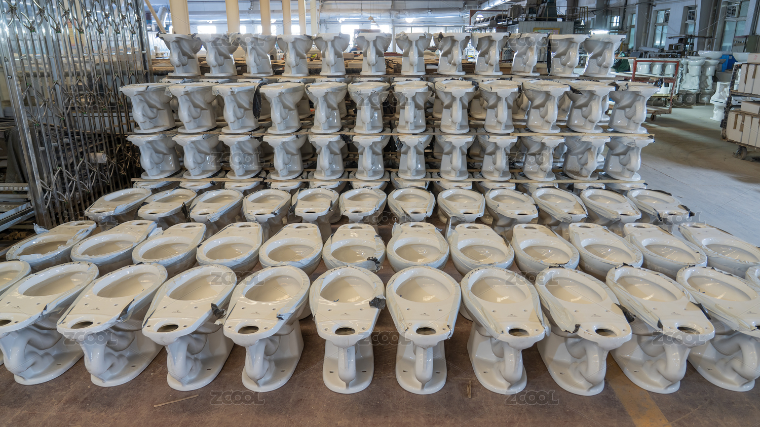 车间里堆放的陶瓷坐便器组件