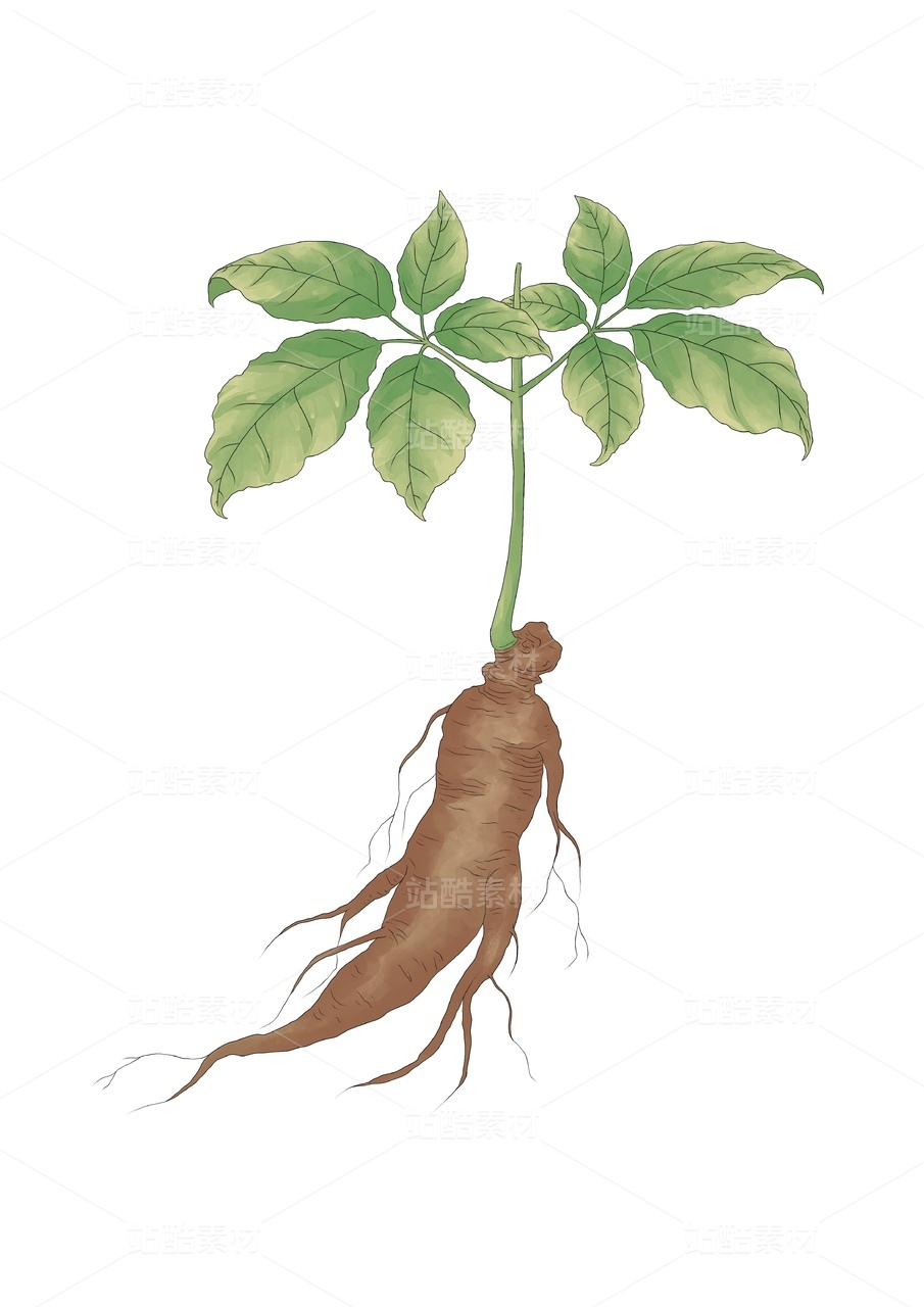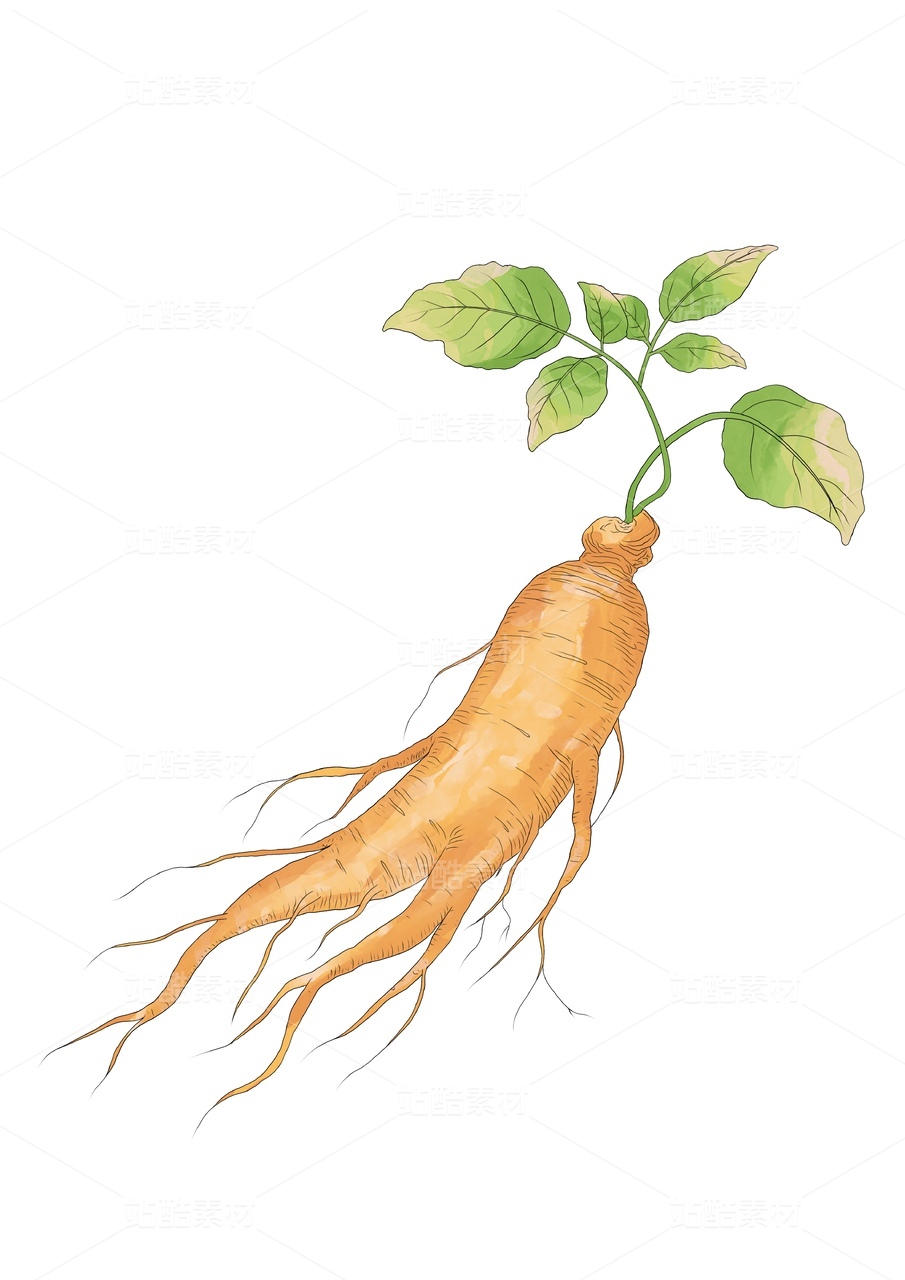 中药材人参写实风插画