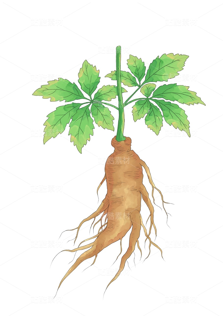 手绘水彩中药药材人参插画