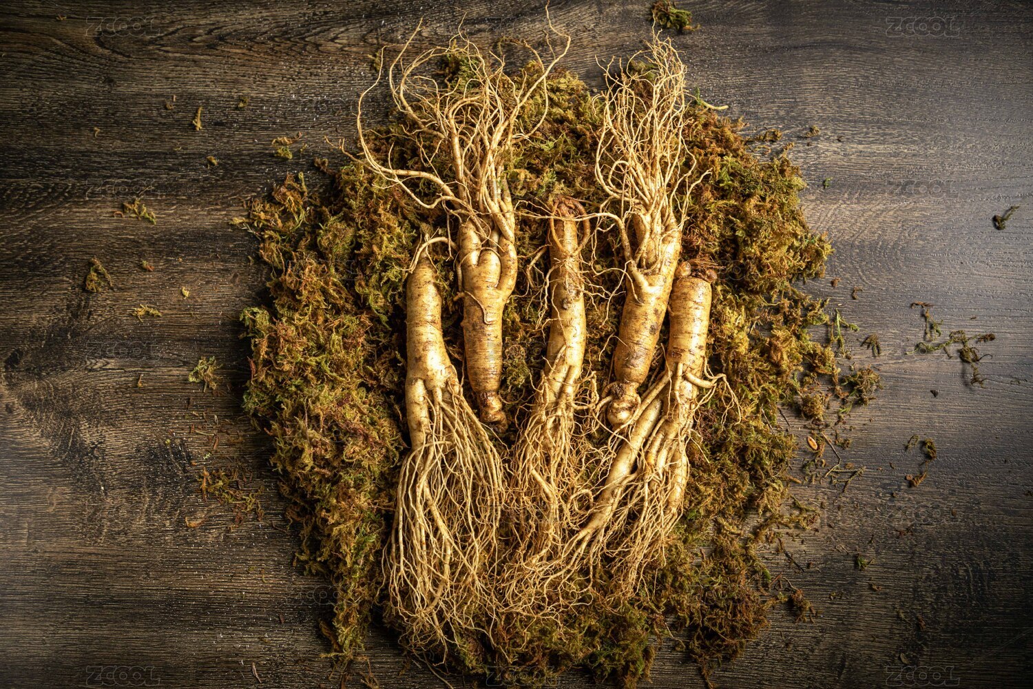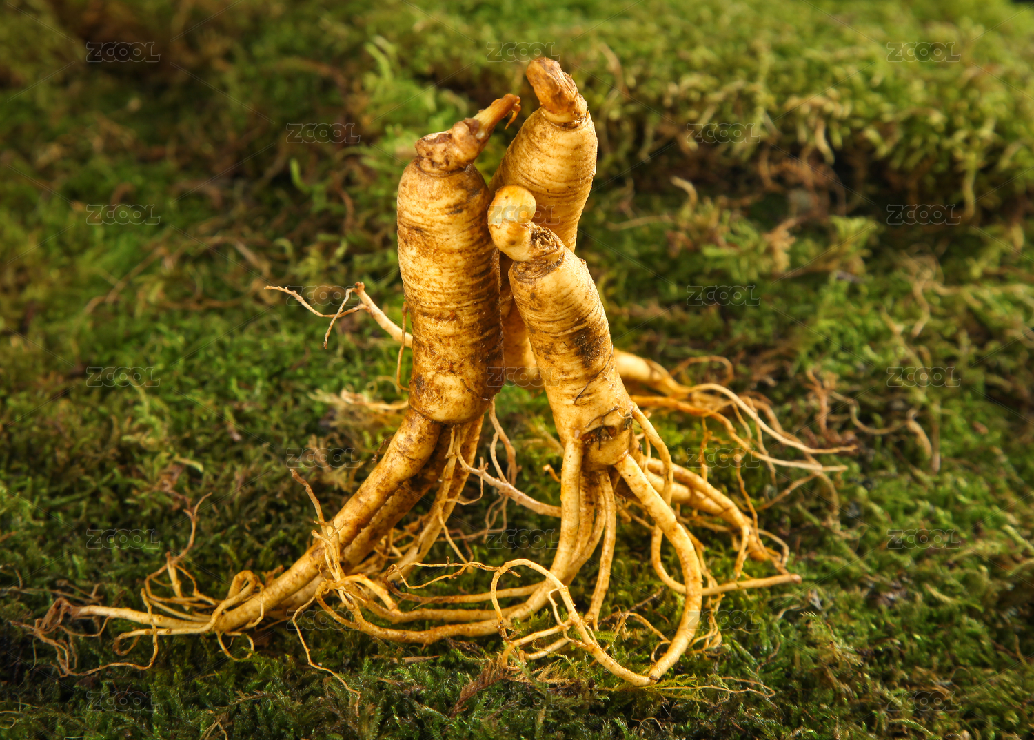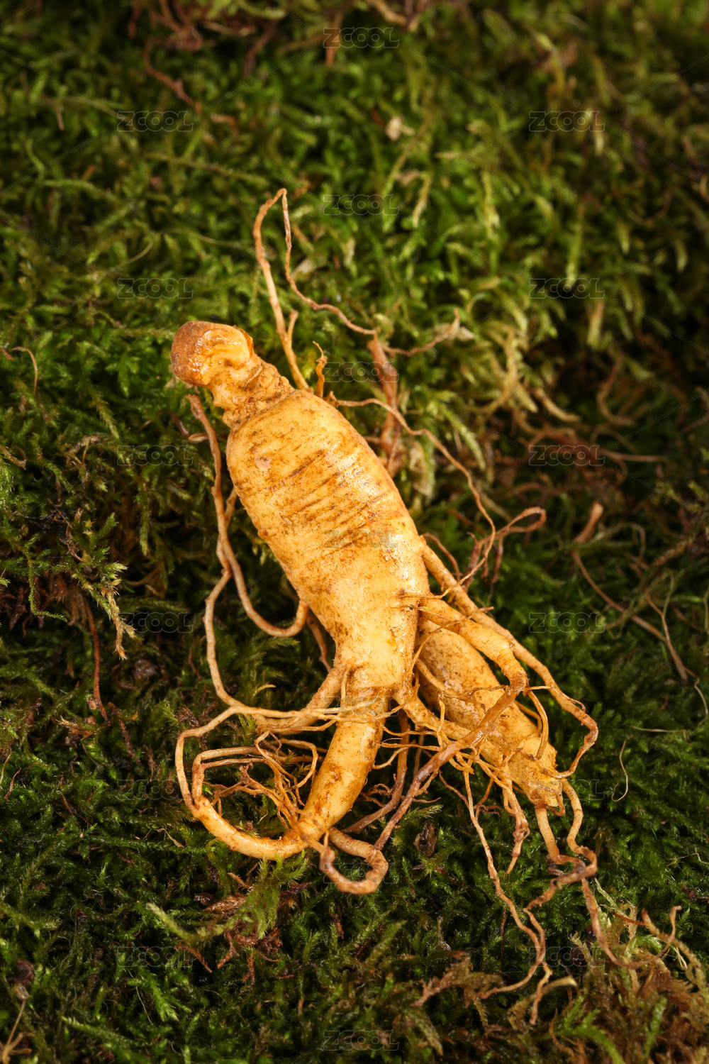 苔藓上放着一些鲜人参
