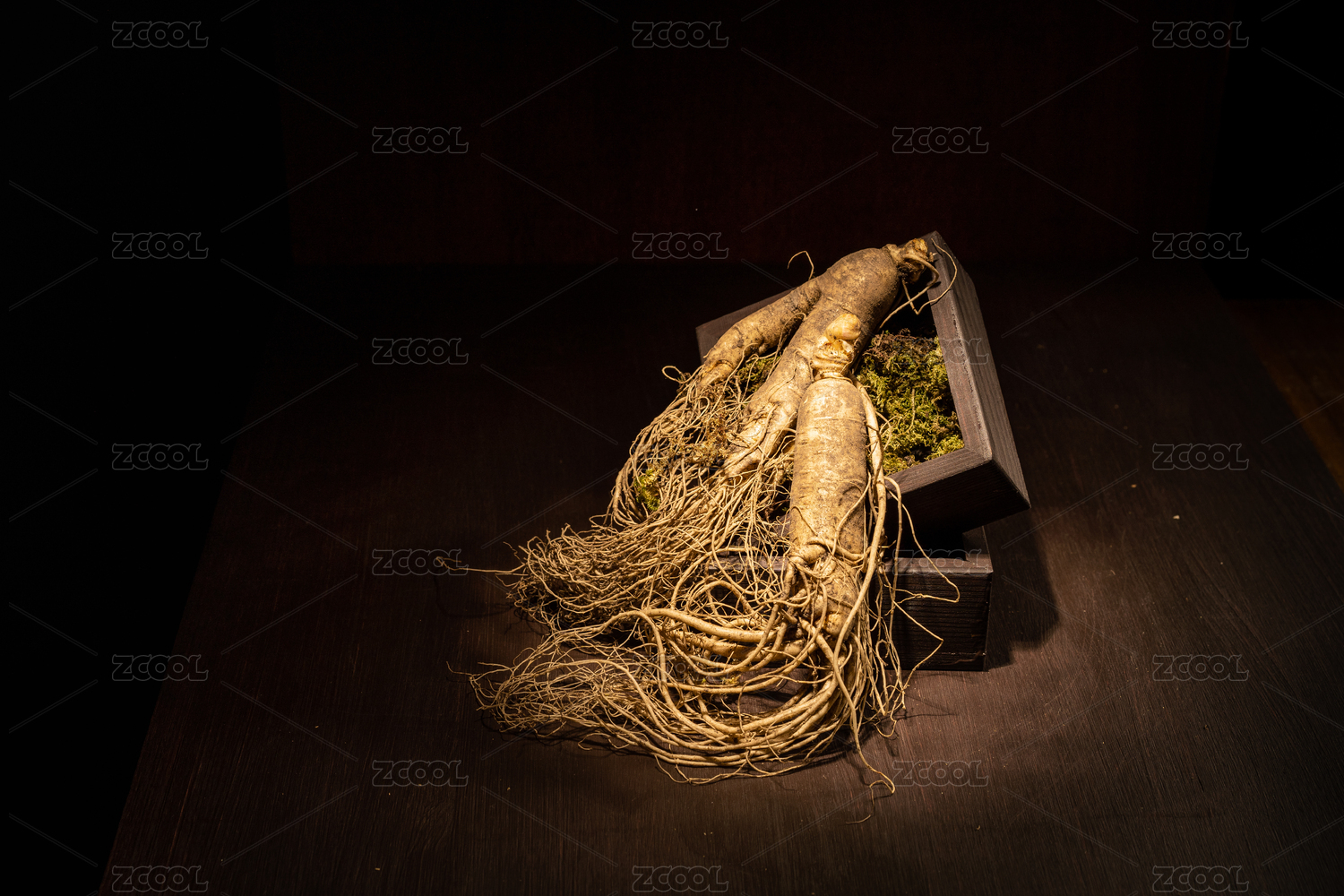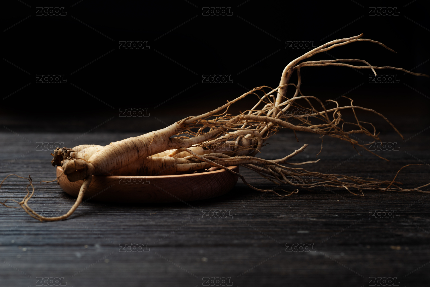 暗色背景下的东北人参