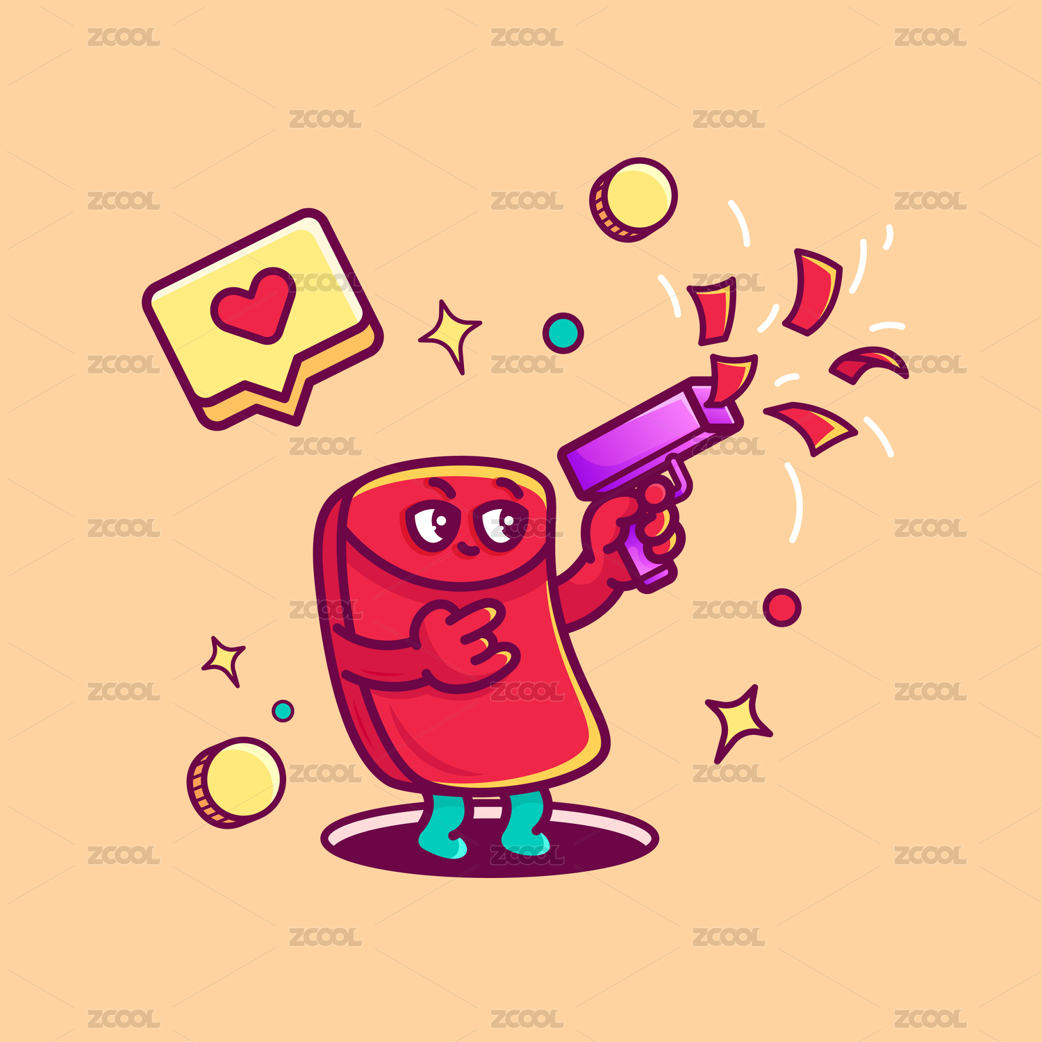 中国传统生肖龙年喷钱枪钞票可爱国潮背景板
