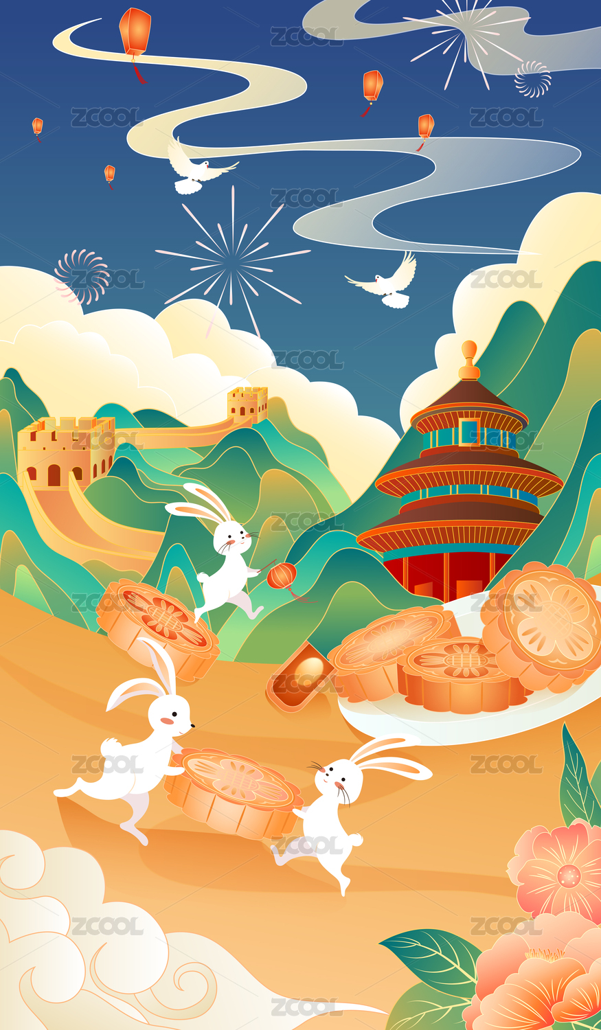 卡通元宵节庆祝家人团圆中国风背景矢量插画