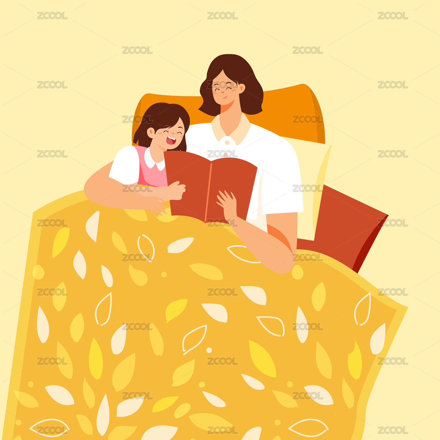 亲子睡前读物矢量插画