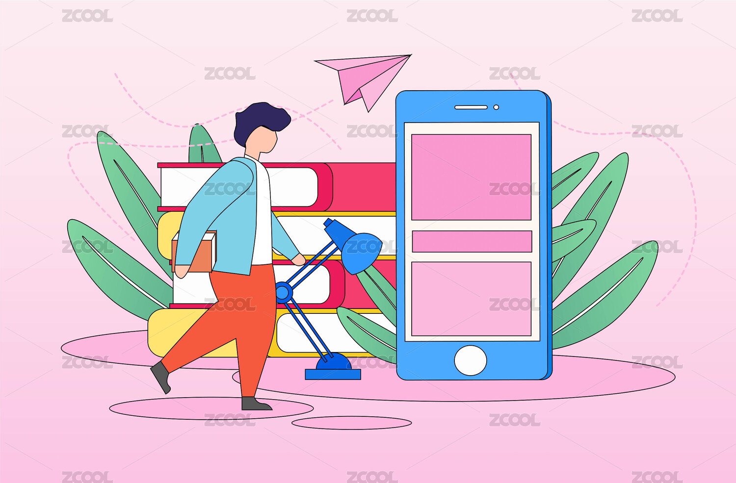 电子读物与学习的男人-带线条