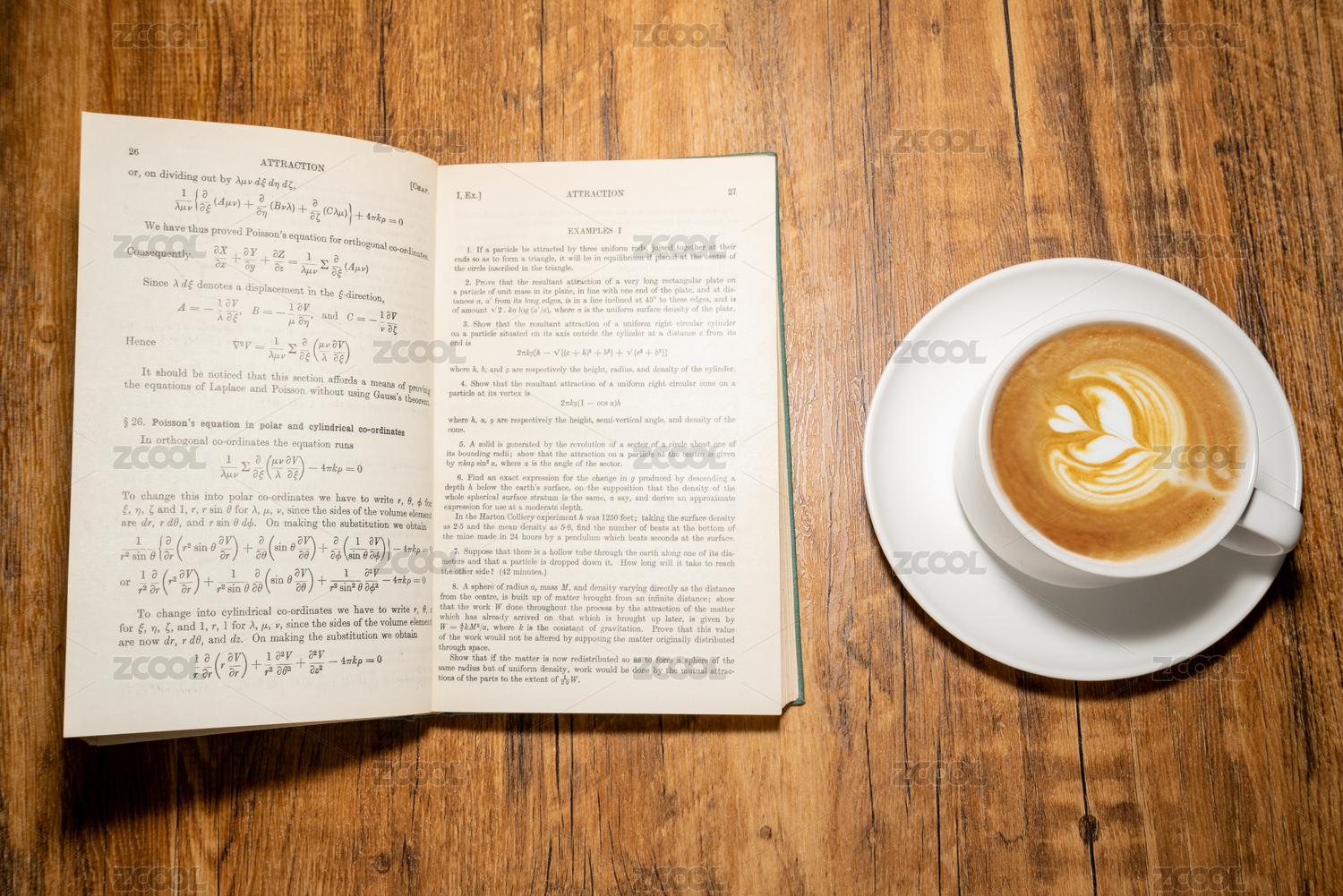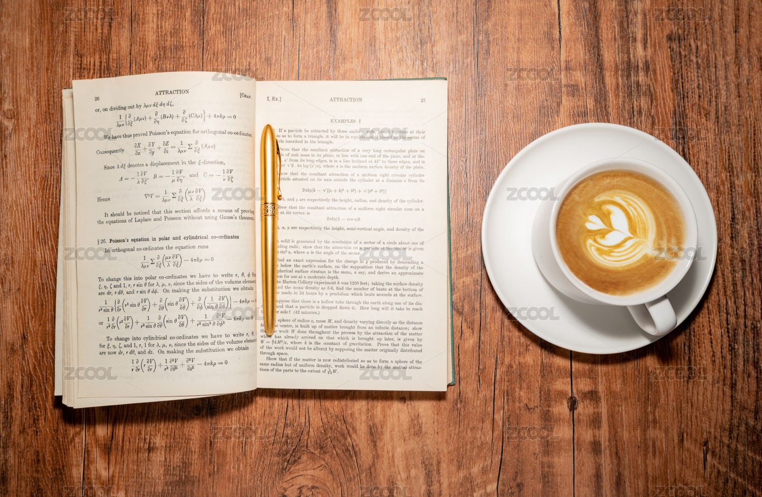 木制办公室办公桌桌面放着数学课外英文读物和咖啡杯午后学习自习自律概念