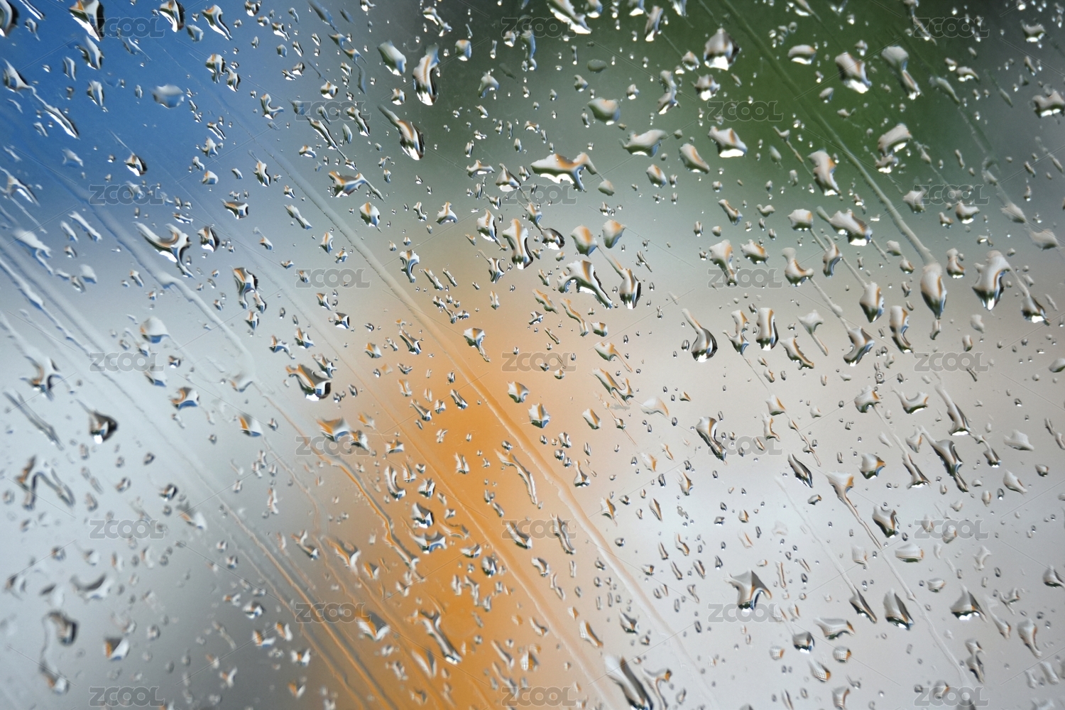 雨天玻璃表面雨水痕迹空镜