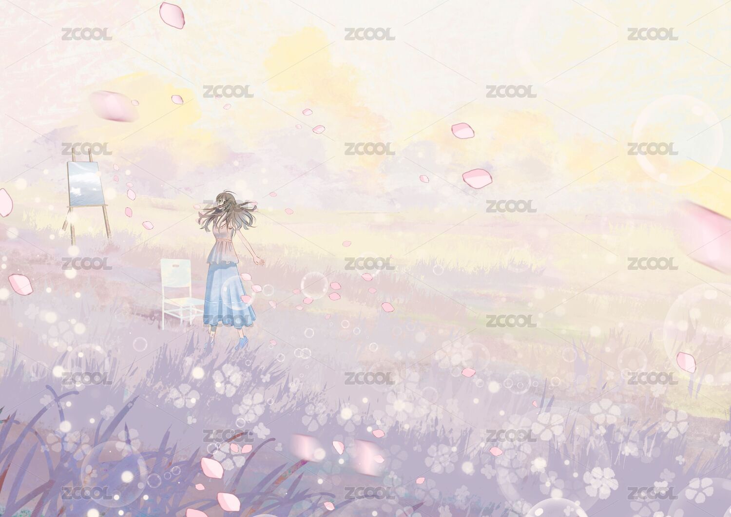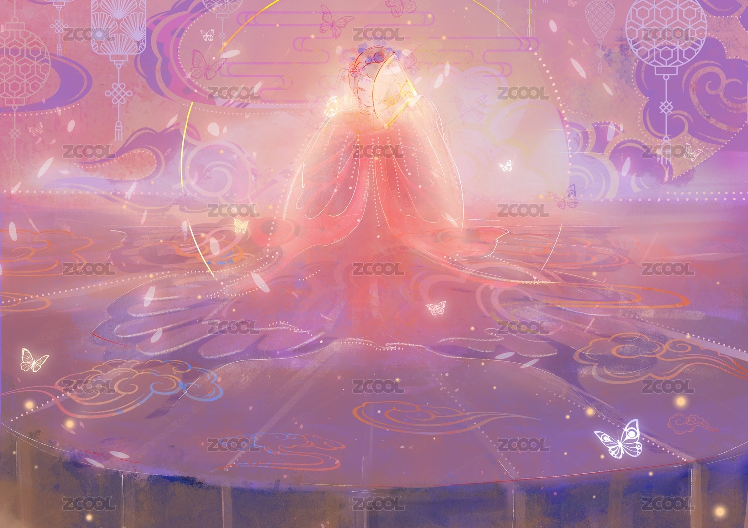 粉紫色唯美风格氛围感插画
