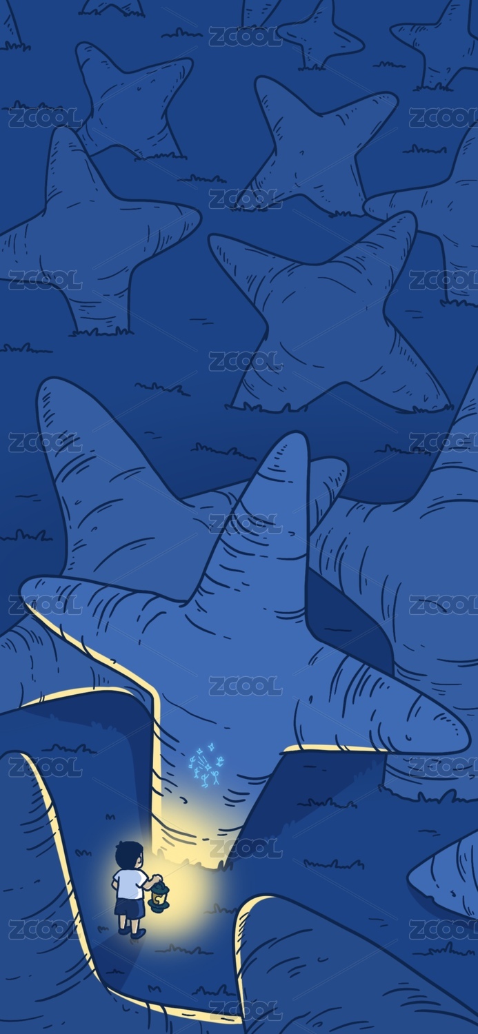 男孩提着灯在黑夜里
