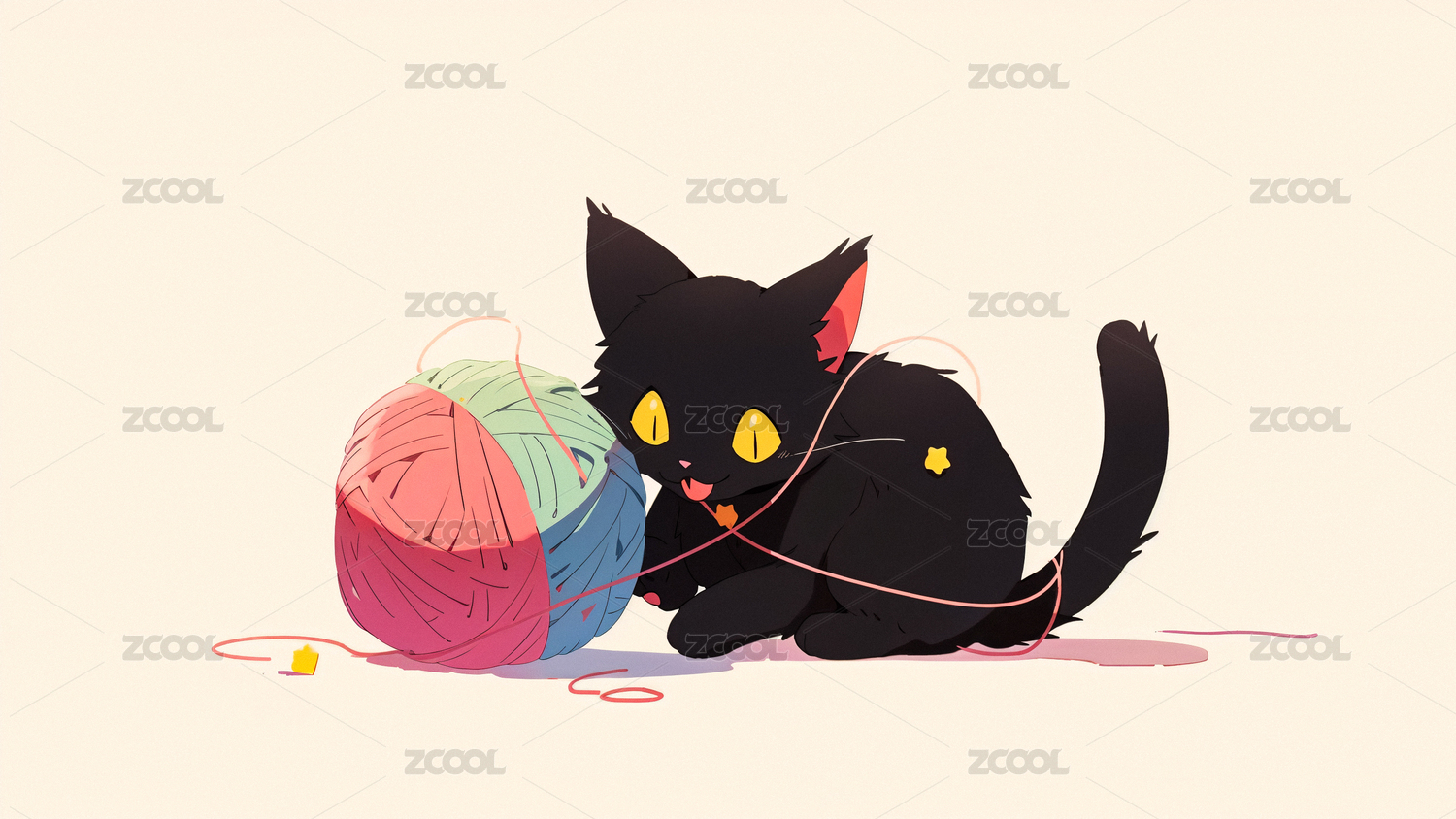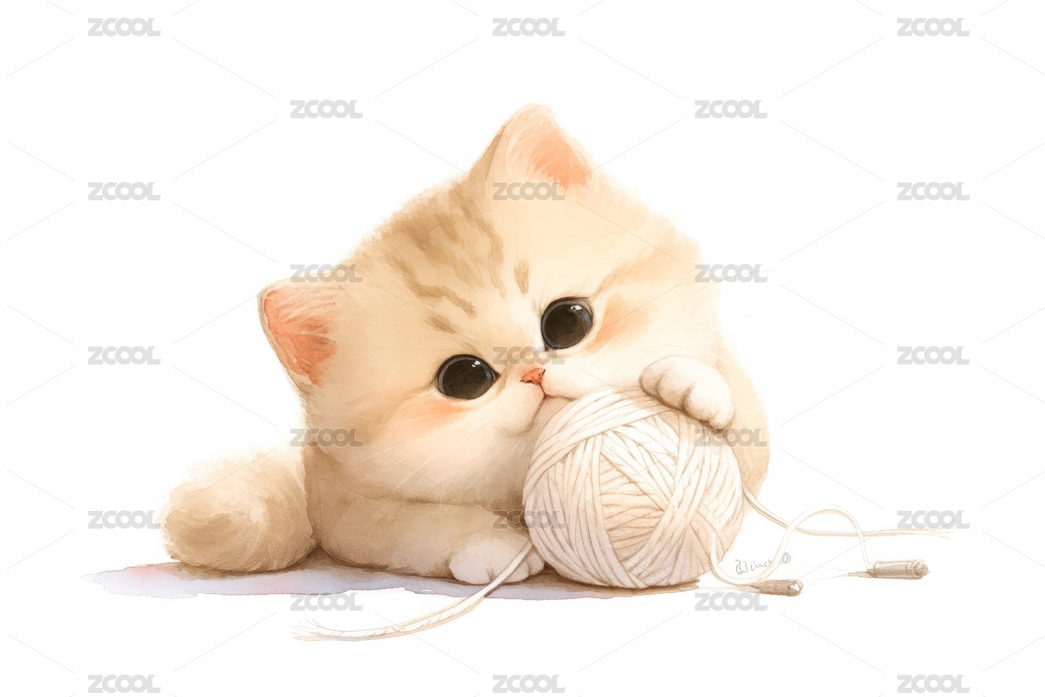 小猫坐毛线球编织袜子台灯盆栽挂画毯子壁纸