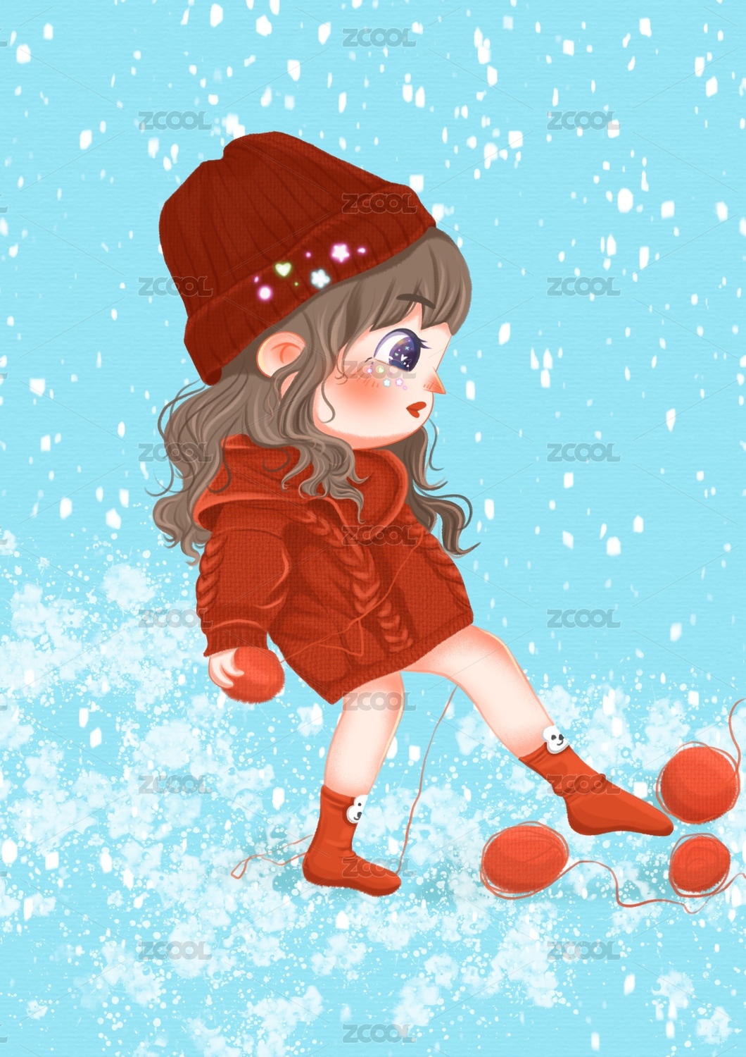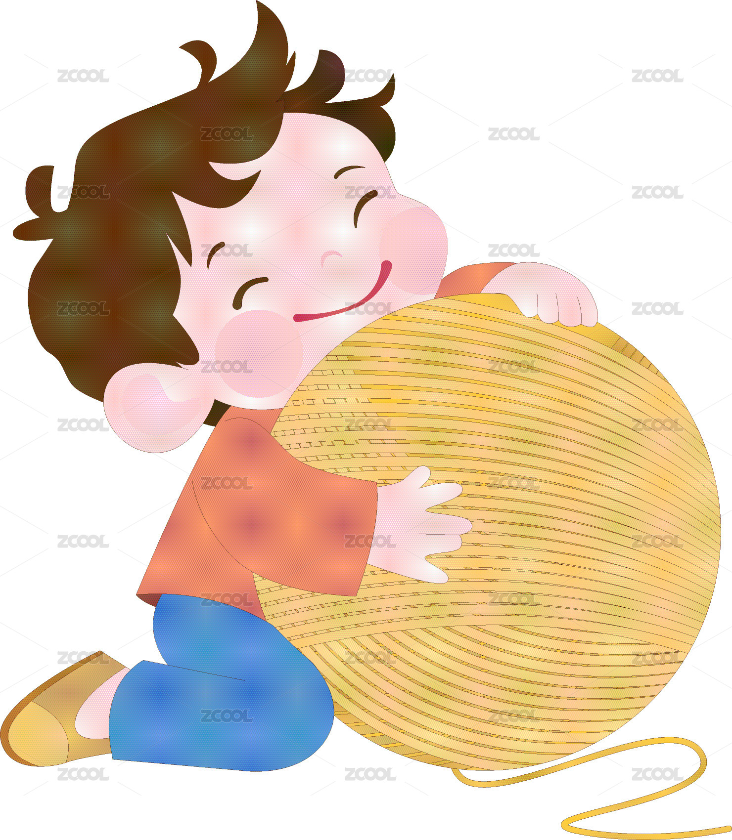 卡通男孩抱着毛线球开心玩耍小学生儿童插画