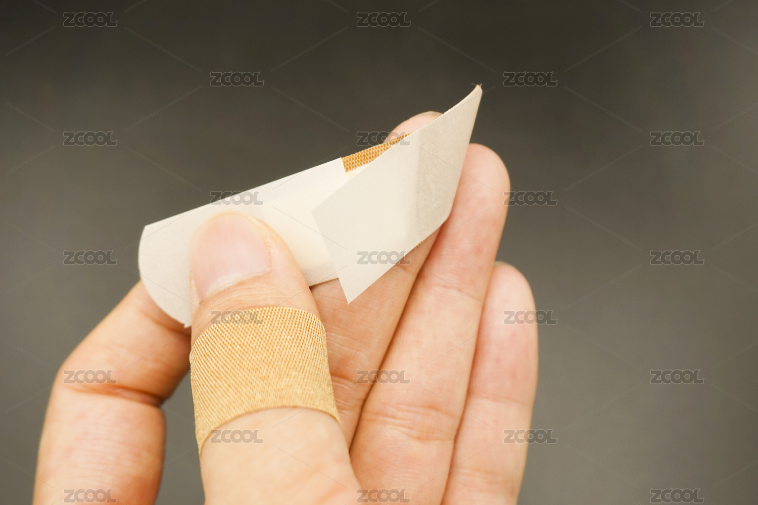 黑色背景中受伤的手指和创可贴