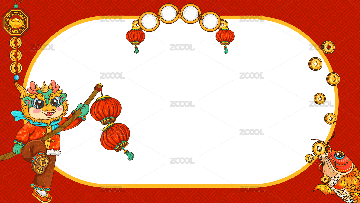 国潮矢量中国风红色龙年灯笼鲤鱼装饰背景墙