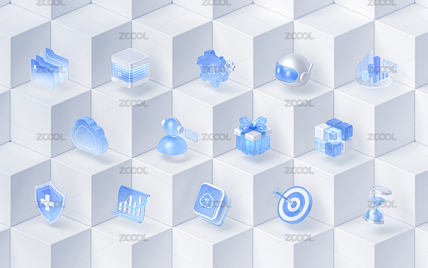 科技蓝白图标六边形几何蜂巢背景墙3D海报