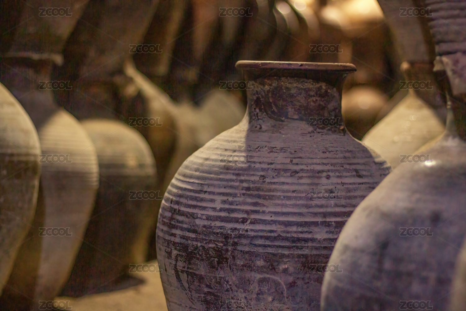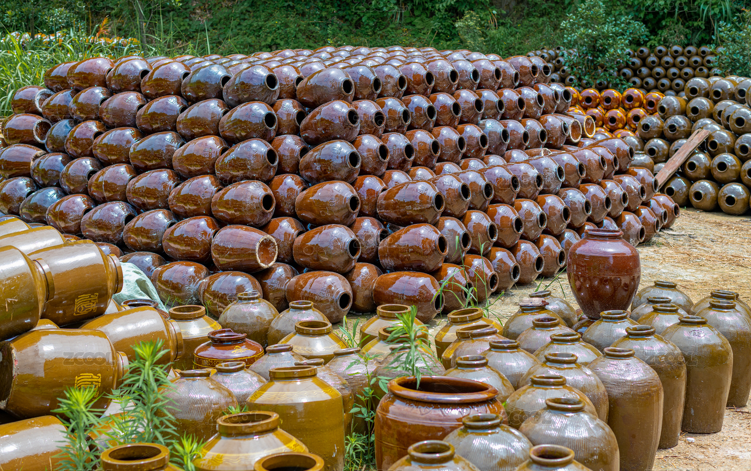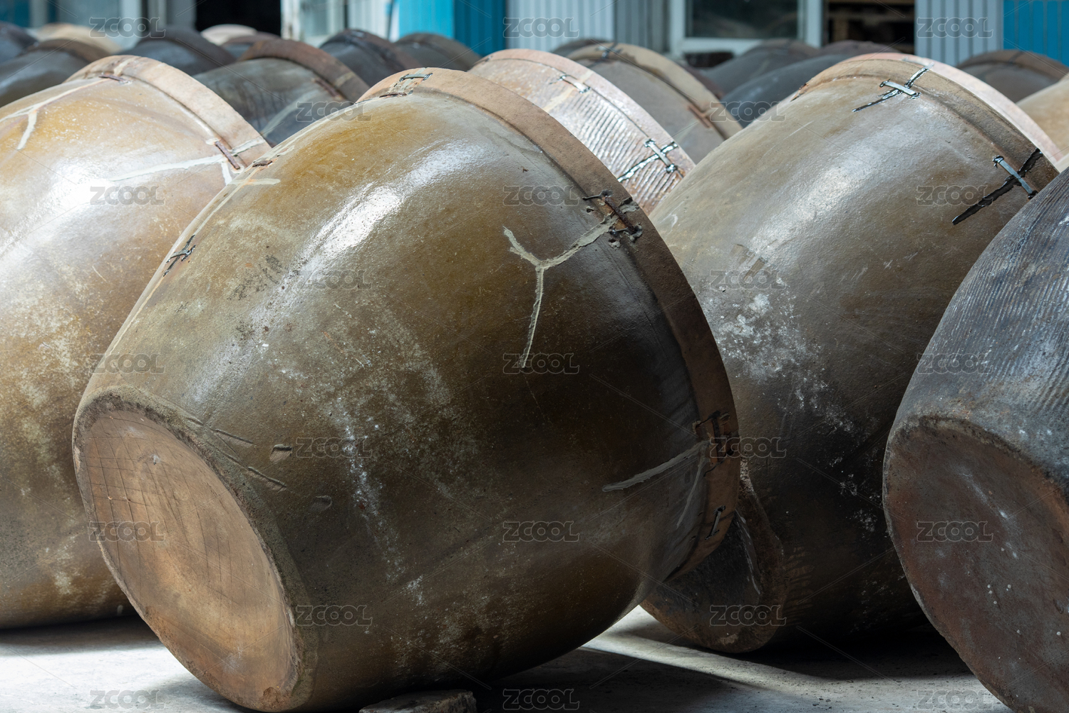 地窖内垒叠起来采用固态发酵方式的发酵酒缸