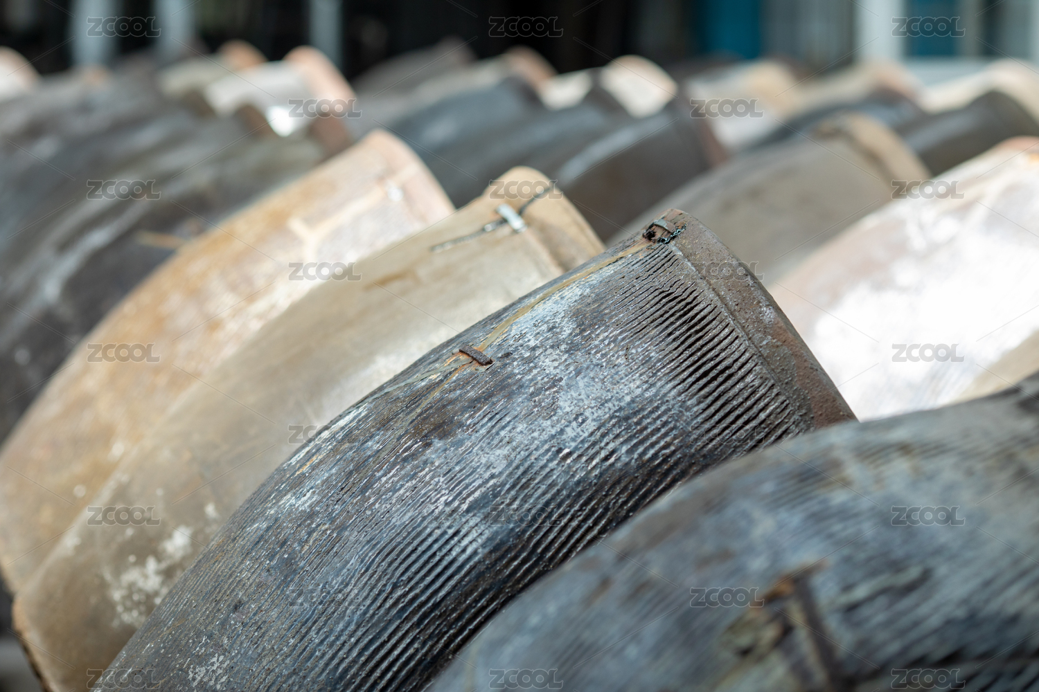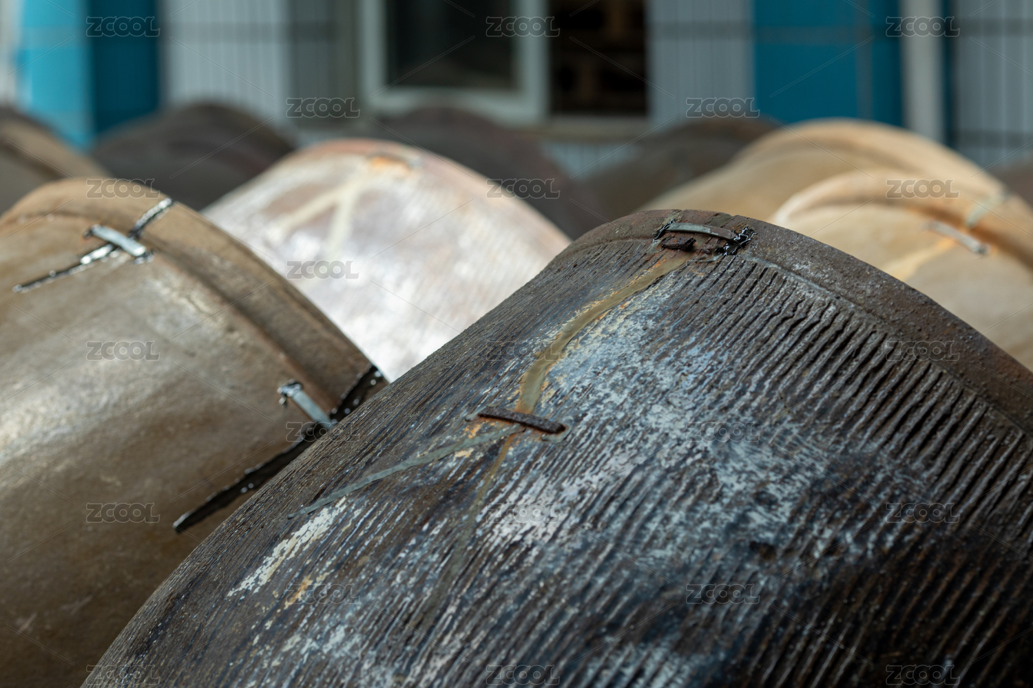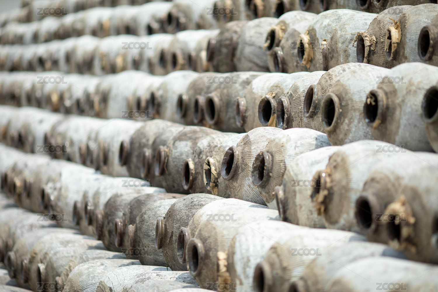 地窖内垒叠起来采用固态发酵方式的发酵酒缸