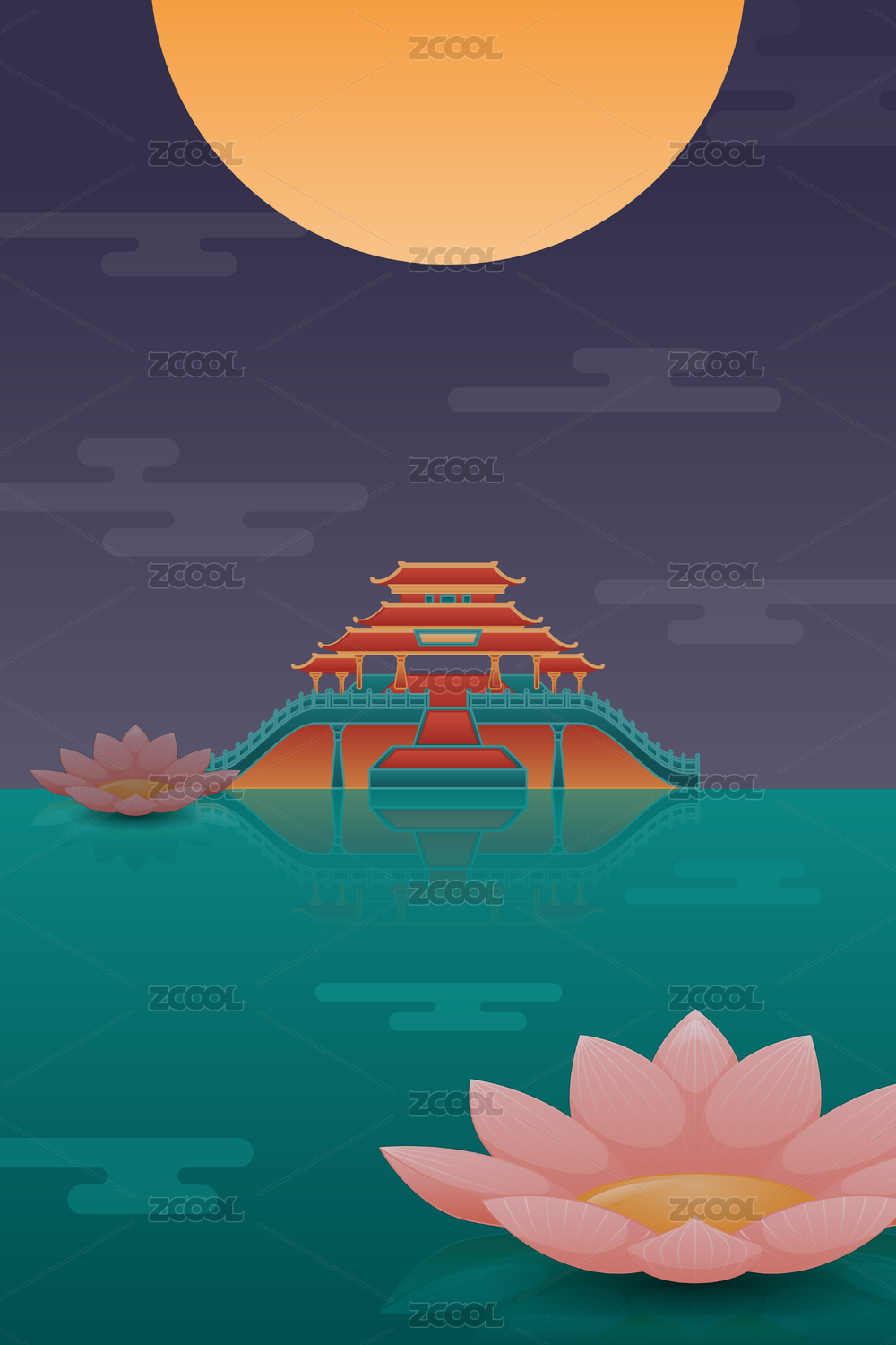 中秋荷花池塘赏月创意海报背景