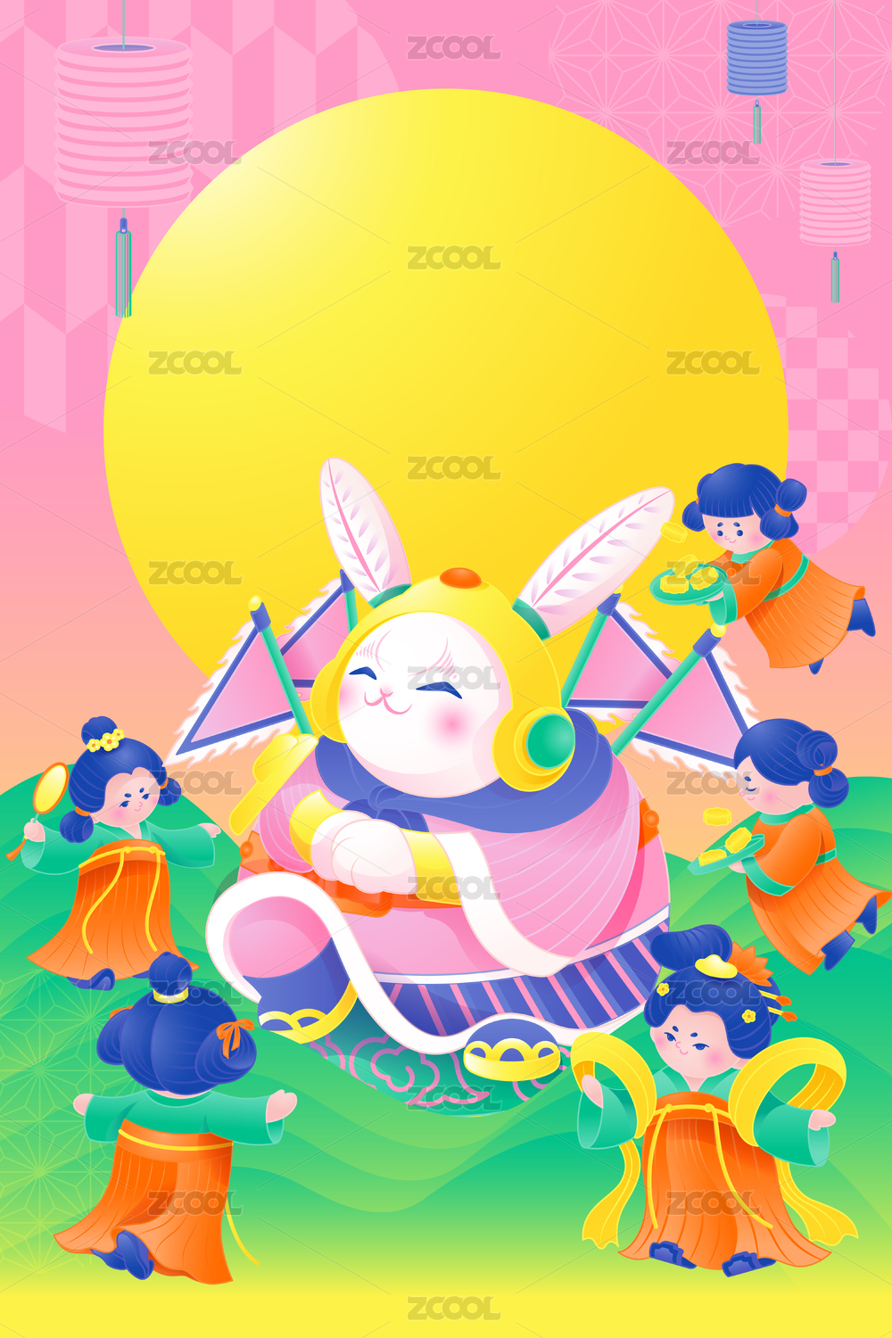中秋兔儿爷与仕女创意海报
