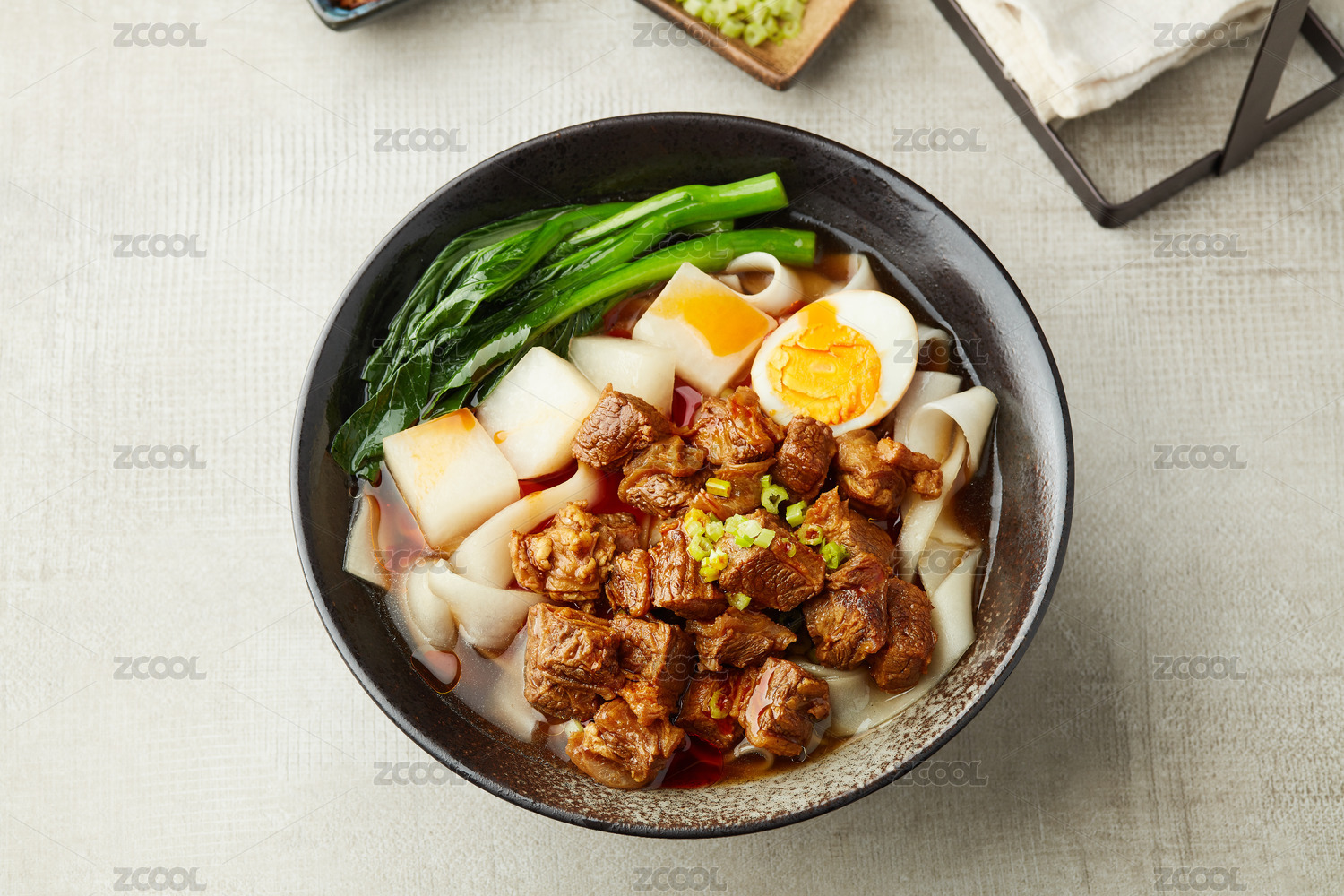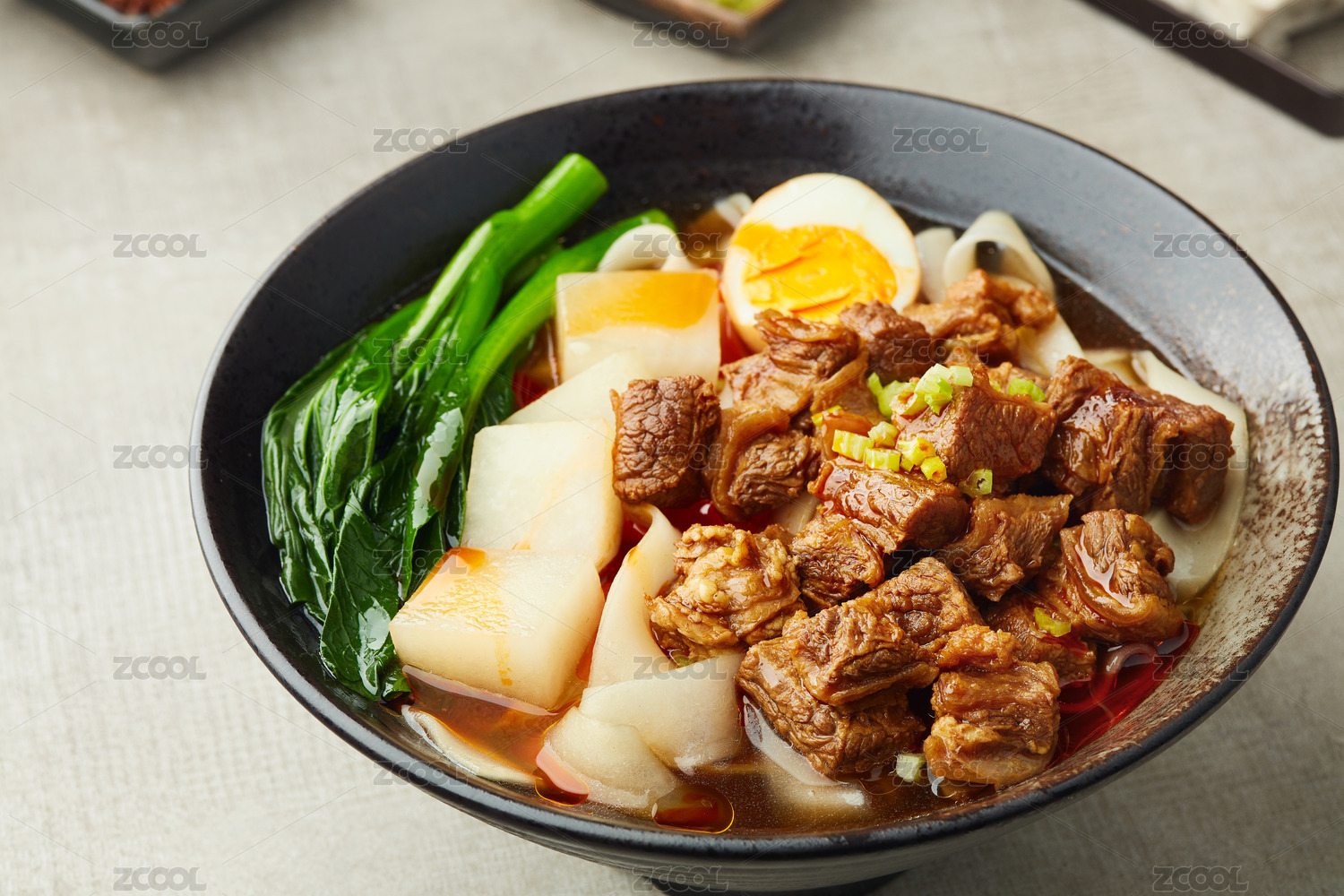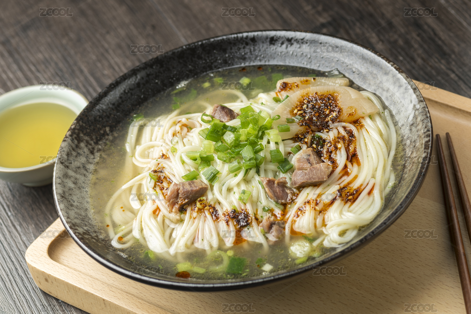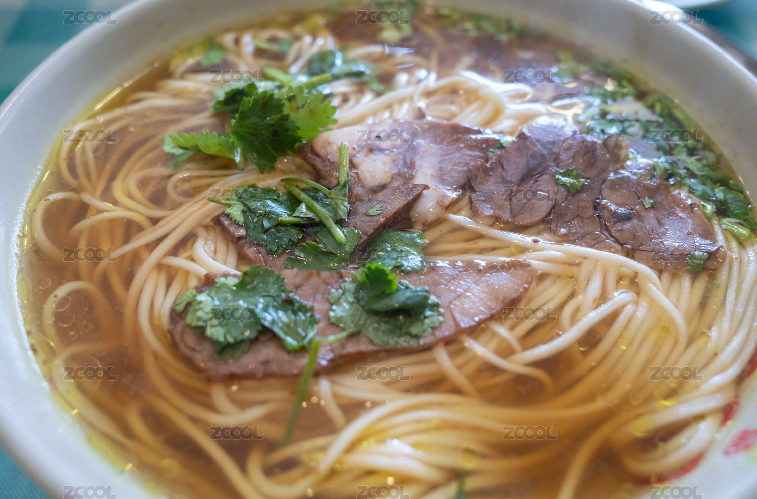 牛肉拉面放在白瓷碗里