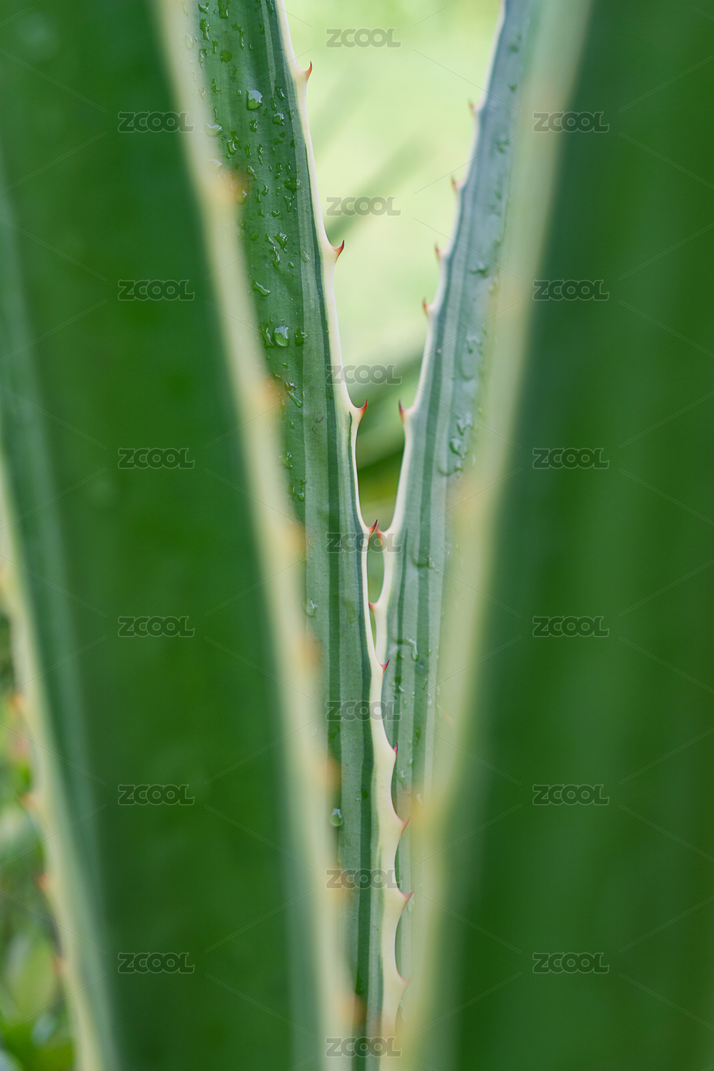 公园里的龙舌兰绿色叶子尖刺特写