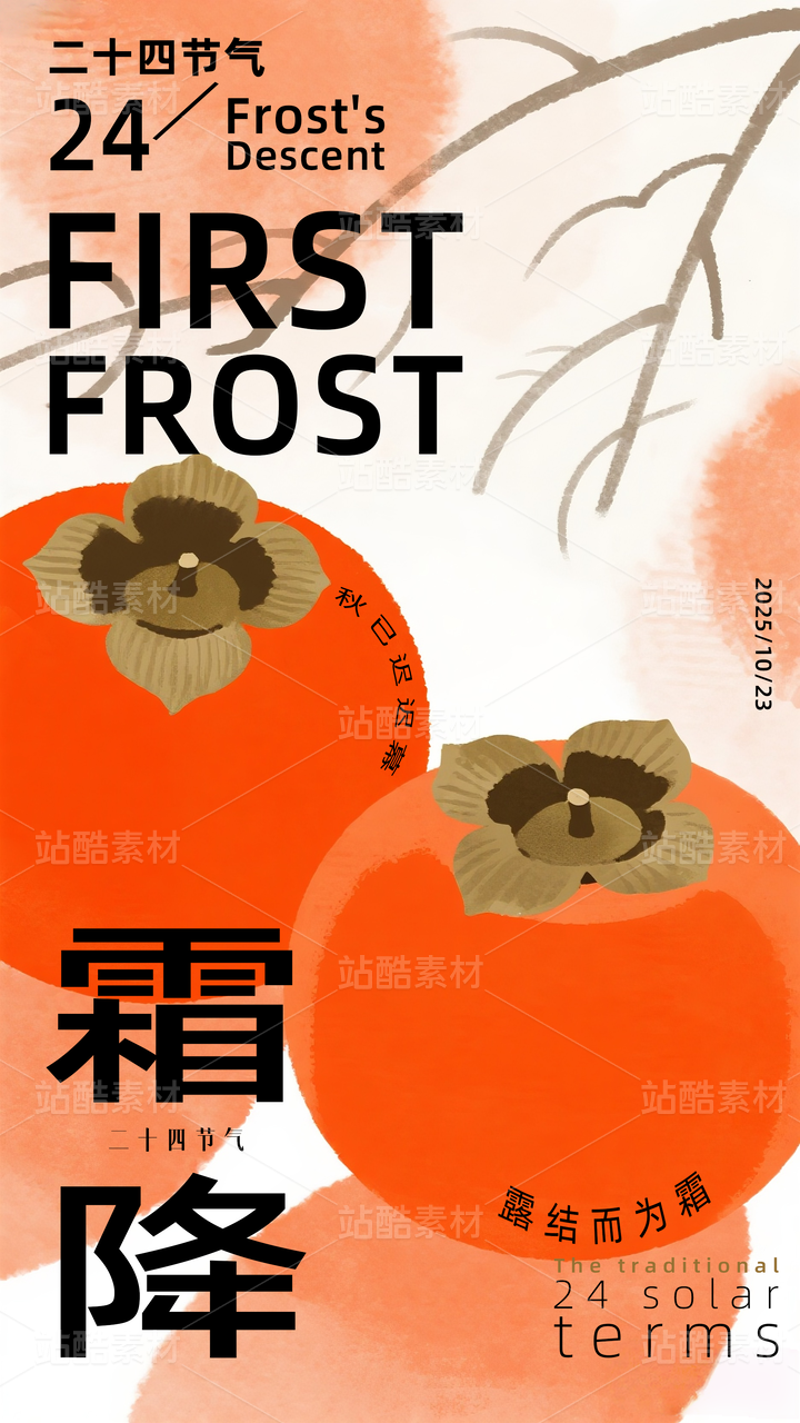 扁平插画霜降节气海报模板