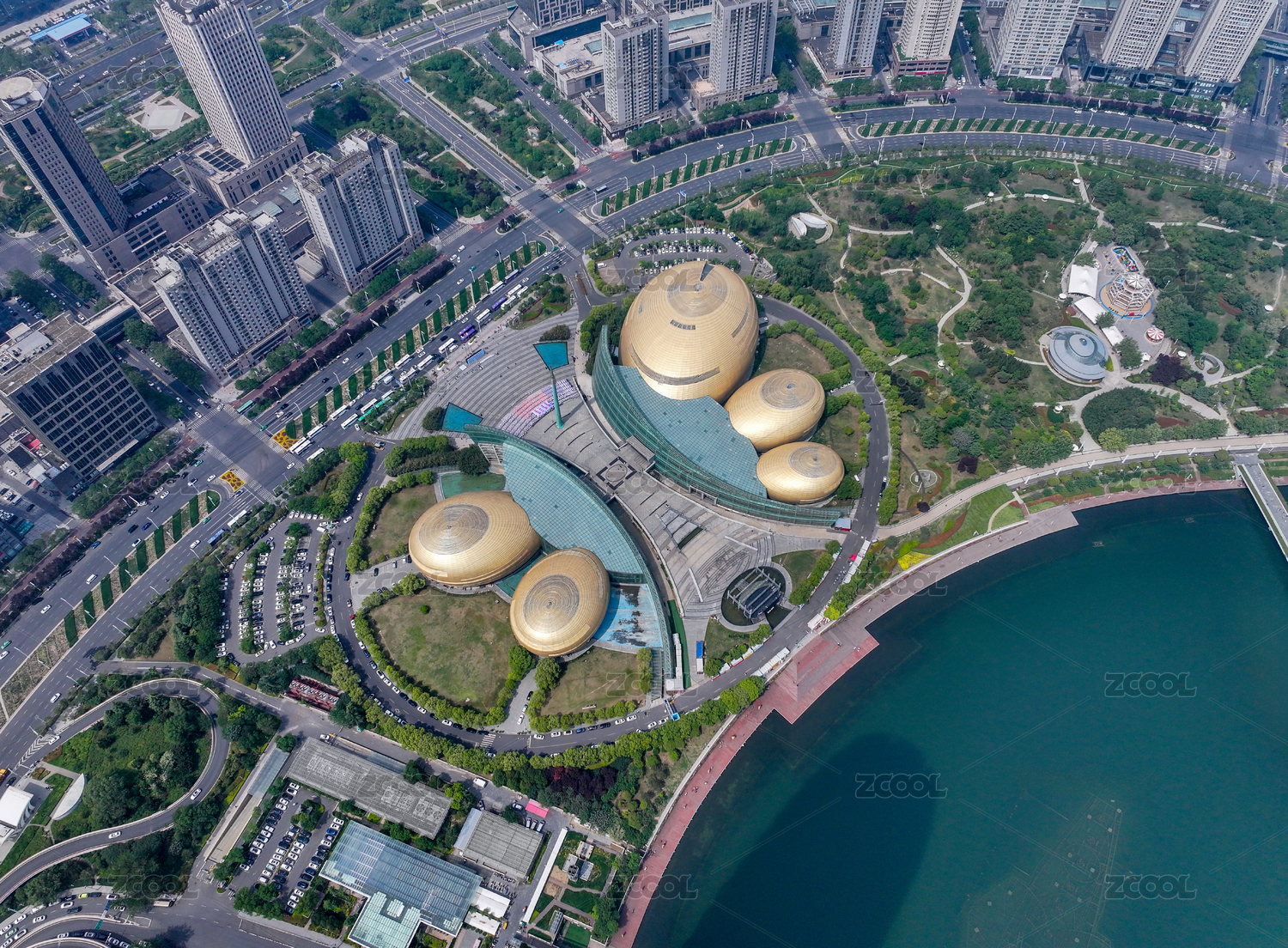河南郑州著名地标千玺广场“玉米楼”航拍城
